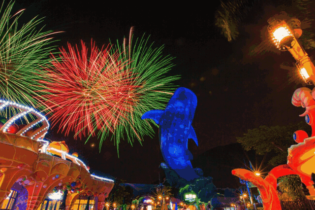 20:00观看【海洋保卫战-烟花汇演】,汇聚无人机演出、烟花表演、激光秀,喷泉汇演、水上飞人,摩托艇特技六大元素,缔造视听冲击力十足的感官享受。冰凉夏日,惊喜十足的海洋王国岂能错过!为您与挚爱留下温馨的回忆。