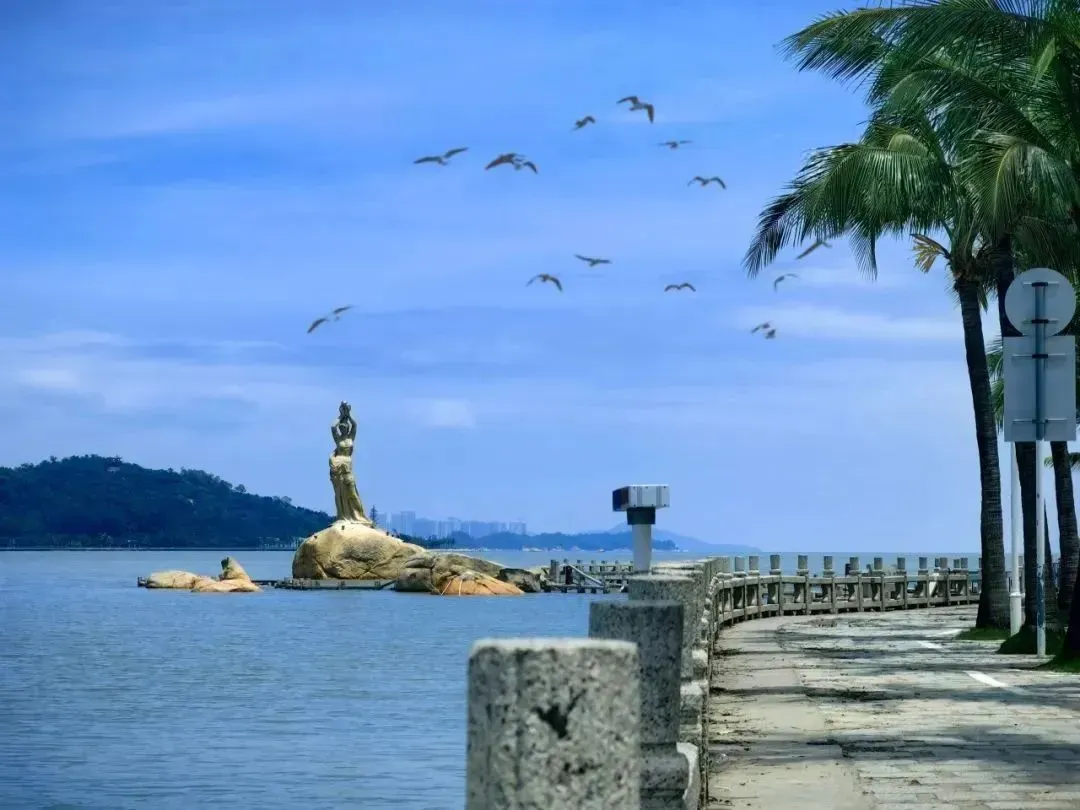 游览【珠海渔女、情侣路】珠海渔女塑像是这里的标志性物。海神女儿,手捧宝珠,屹立海上,给珠海人民送来希望和幸福。情侣路是珠海人民举行重大活动的地方,被誉为珠海的‘万里长城’,珠海的旅游观光地。情侣路 充分体现了自然和人文的相互交