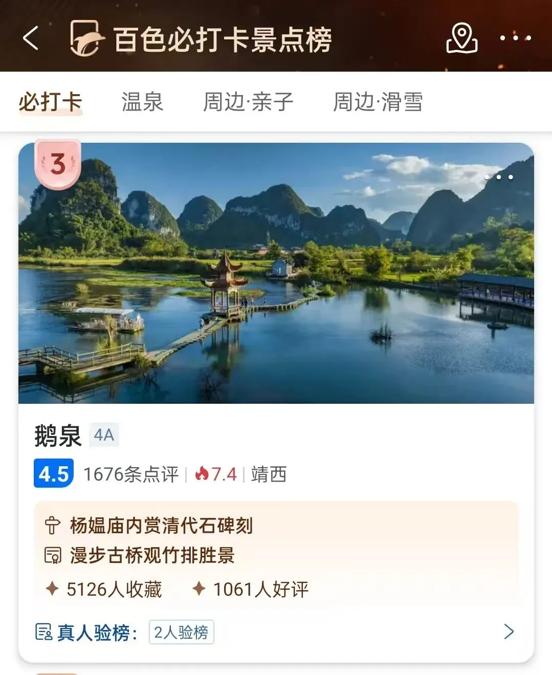喜报速递——靖西市鹅泉景区连续两年荣登携程“必打卡景点榜”!