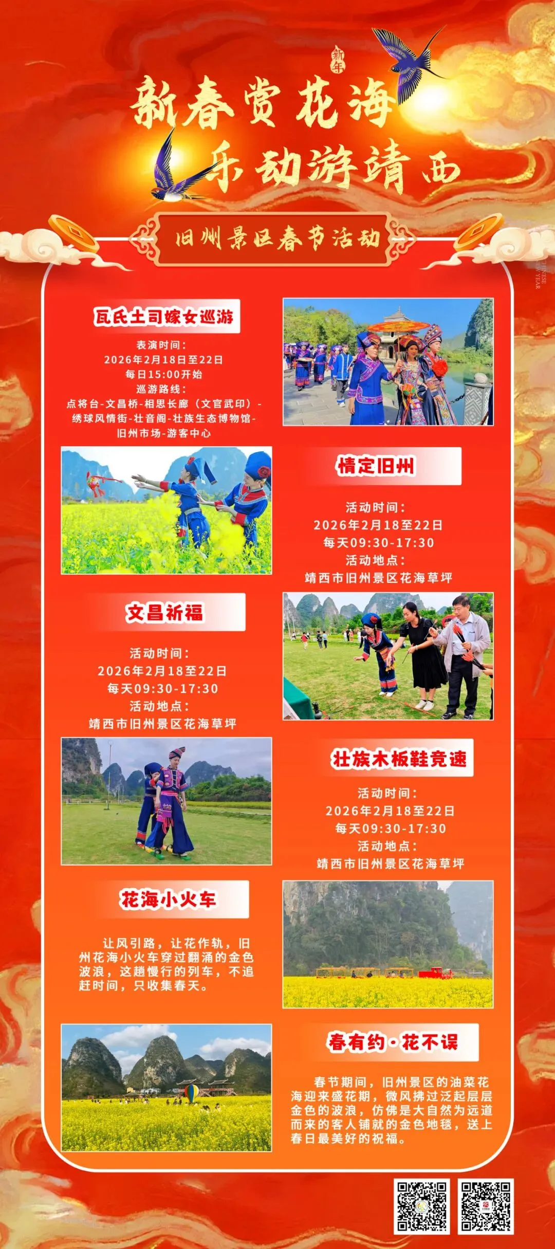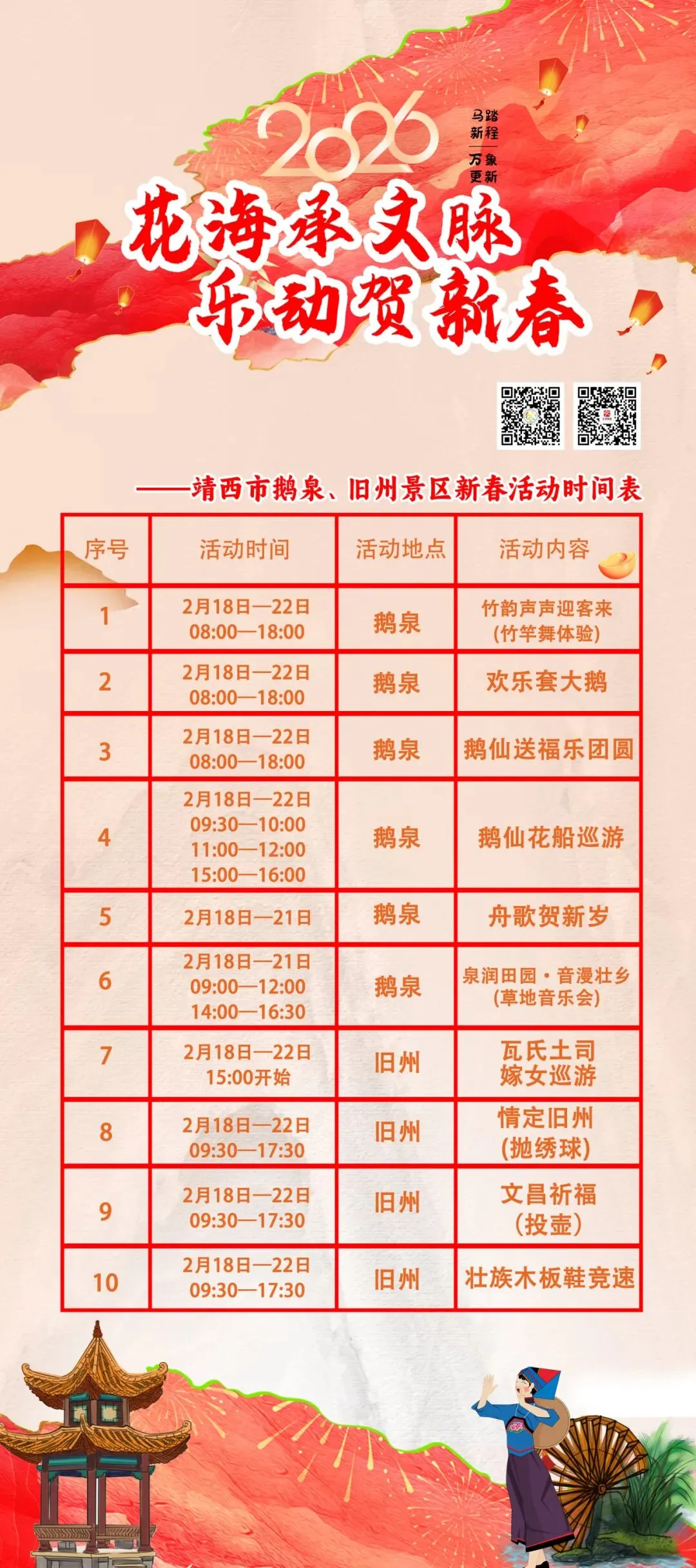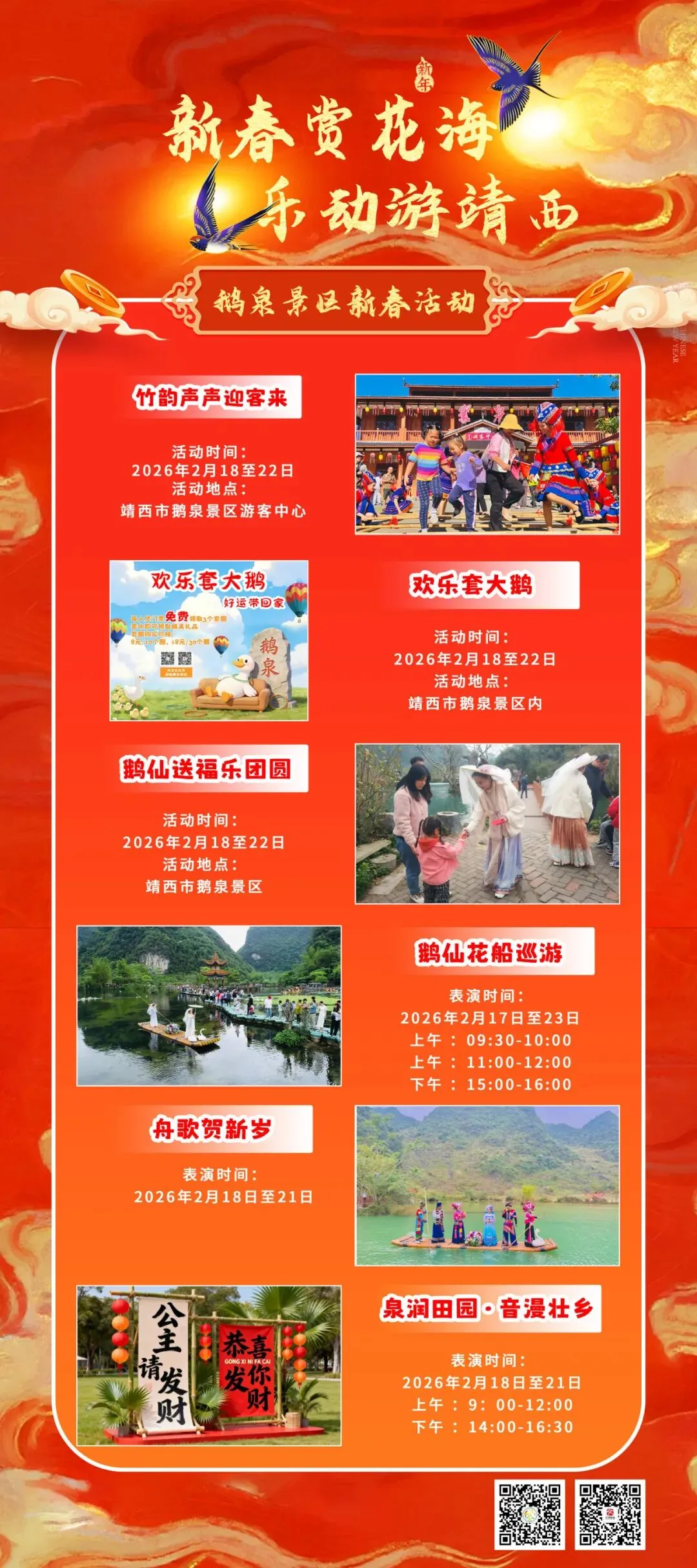 恰逢丙午新春,值此双喜临门之际,鹅泉、旧州景区特别推出新春主题活动,让传统年味在山水间焕发新意~