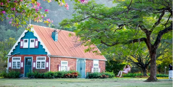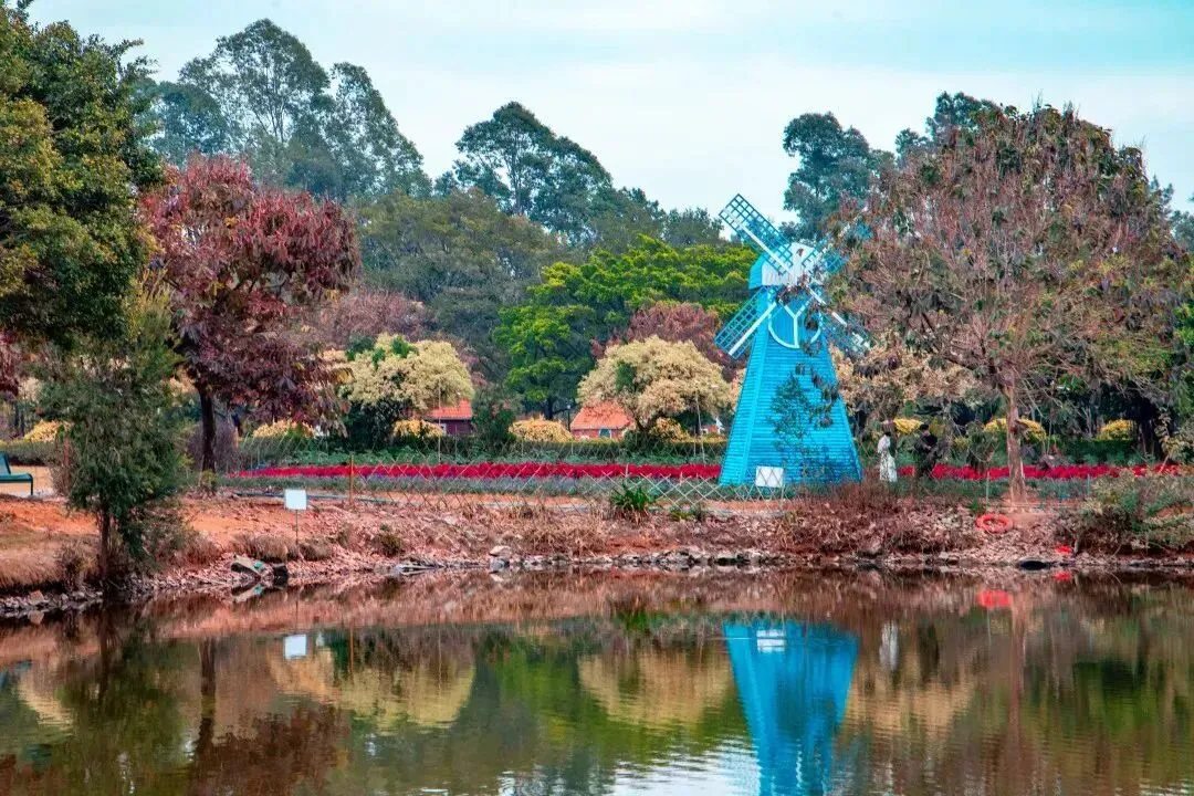 花海、草坪、风车屋