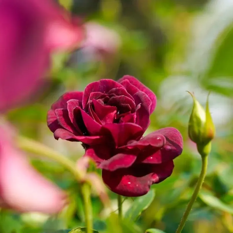 不同颜色相互映衬述说春日的浪漫凝结在花瓣上的水滴让本就动人的月季