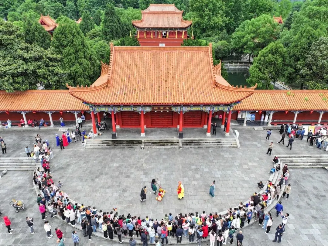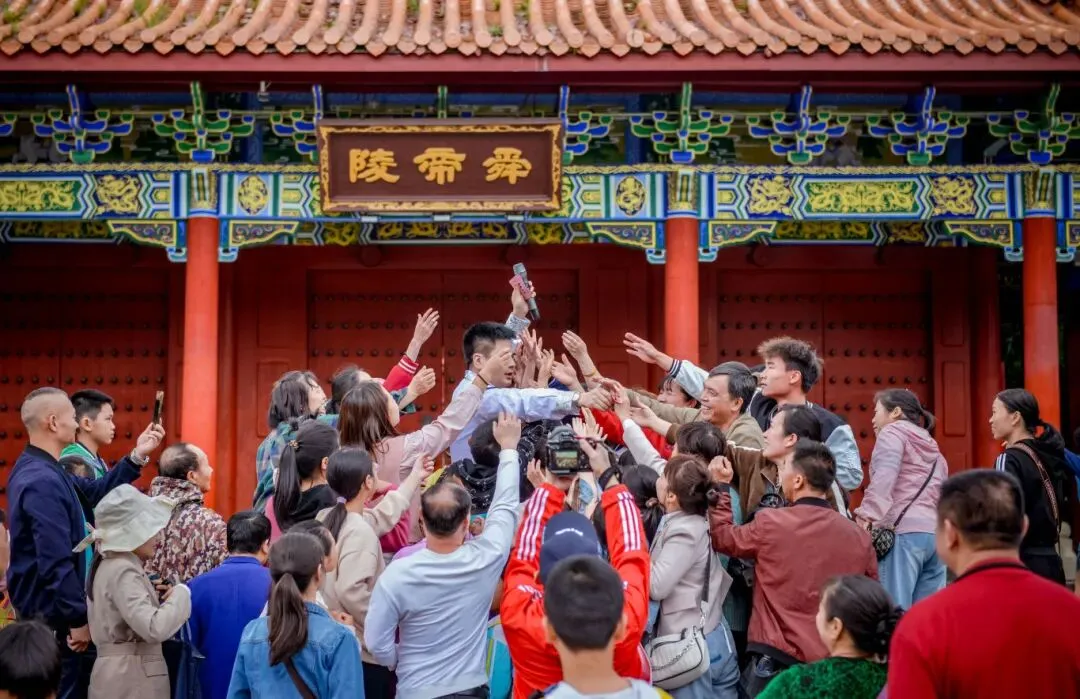 “五一”黄金周期间,宁远县文化馆送戏进景区活动在九嶷山舜帝陵景区举行。此次活动旨在丰富游客的假期生活,推动文化与旅游的深度融合。