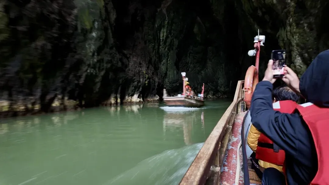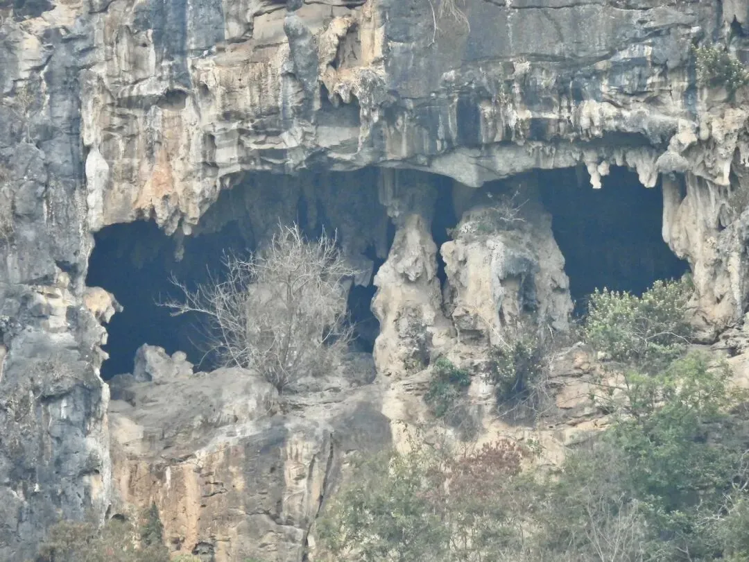 从这个洞口进村的出村子-先坐一短段船-没有洞穴,只有敞开的石灰岩喀斯特地质通路和一个穹顶口。然后开始走1.3公里栈道-景色很好。这里有个大问题,文旅局让游客只走一次是非常不合理的,躺平的游客完全可以每天重复走这个步道,哪怕多付一点船票也可以,或者直接多修一点栈道把这部分和村里接起来,这么漂亮的景色只让游客走一次实在太浪费资源了。鸟友明明可以反复刷这个栈道的嘛...今天没除了白顶溪鸲没看到什么别的.希望建议管理方改一下运营方式。再说一下坝美的远古溶洞探洞后,后来在b站看了一些相关视频,发现广西和贵州,云南一些村里不少这种小型溶洞。除了地质研究也没有特别的其他价值。可溶性岩石(主要是石灰岩)被水长期溶蚀、冲刷、塌陷,形成的一整套地貌。核心特点:岩石:石灰岩、白云岩等,遇水会被慢慢“溶解”雨水、地下水、河流长期侵蚀,形成溶洞,里面有地下河、石钟乳、石笋、石柱,石幔等奇石状。总结:就是水把石头“啃”出来的奇特山水。广西、贵州、云南是中国喀斯特最集中、最典型、最美的三大省份。喀斯特山区随便一座山内部都可能有大大小小的溶洞、支洞、很多是未开发野洞,只有当地人才知道. 已开发的只是极少数,大部分是原始黑暗有积水有暗河的小溶洞. 这个就属于这种.几乎每个喀斯特山村背后,山脚下都有一两个甚至更多小溶洞. 大部分没开发. 没灯、没路、没护栏,就是纯天然野洞. 当地人熟悉的会偶尔进去. 深的,远的,水多的,本地人也不乱进. 我们也是顺着台阶走了一小段就出来了.看到了漂亮的典型的溶洞特点的地貌。过几天将去石林附近的九乡官方的溶洞一探究竟看看与此感受的区别。👇🏻这个就是划船进村的洞口,上面有说过了,旁边一棵假的桃花树. 进村就能看到这棵假树.