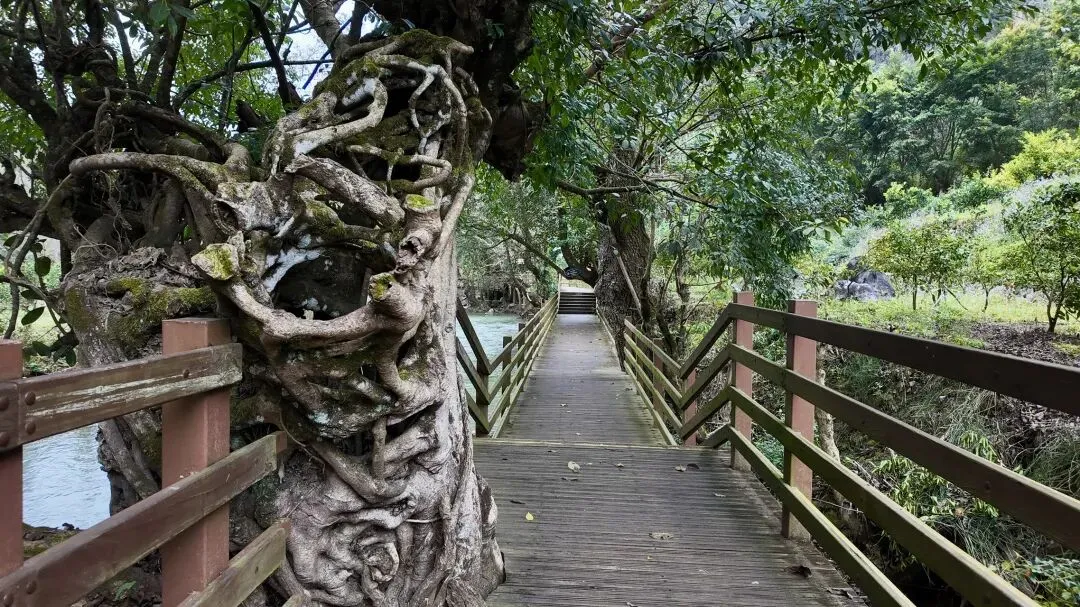 出去后再走一段栈道1.3公里回游客中心.行李放游客中心贴好标签,民宿会过来拿.(出村子有另外一个游船码头)