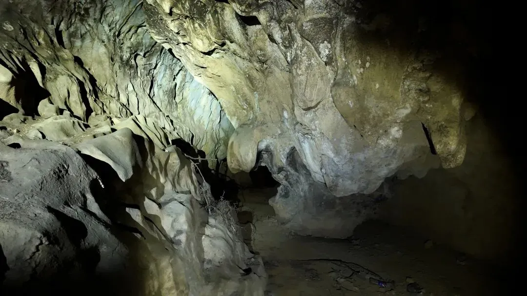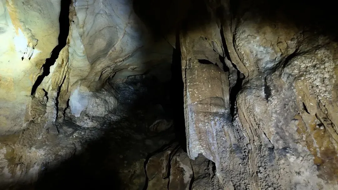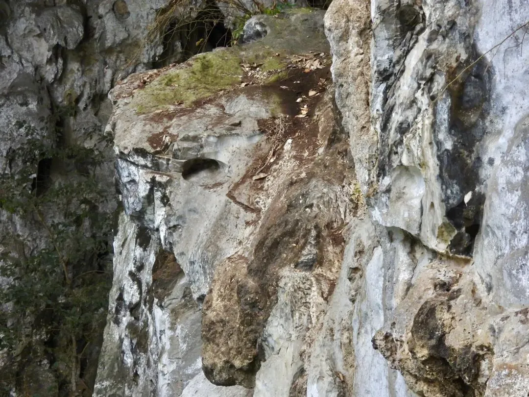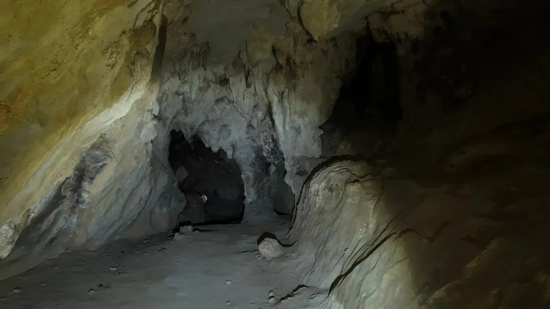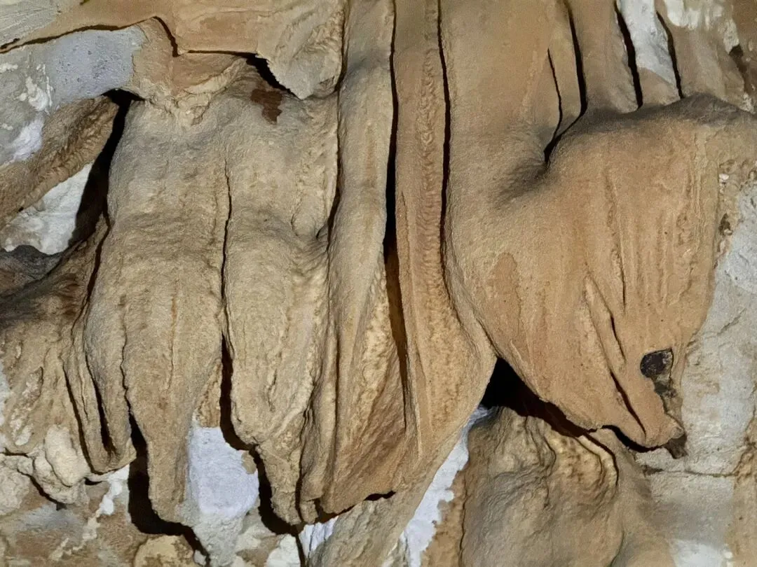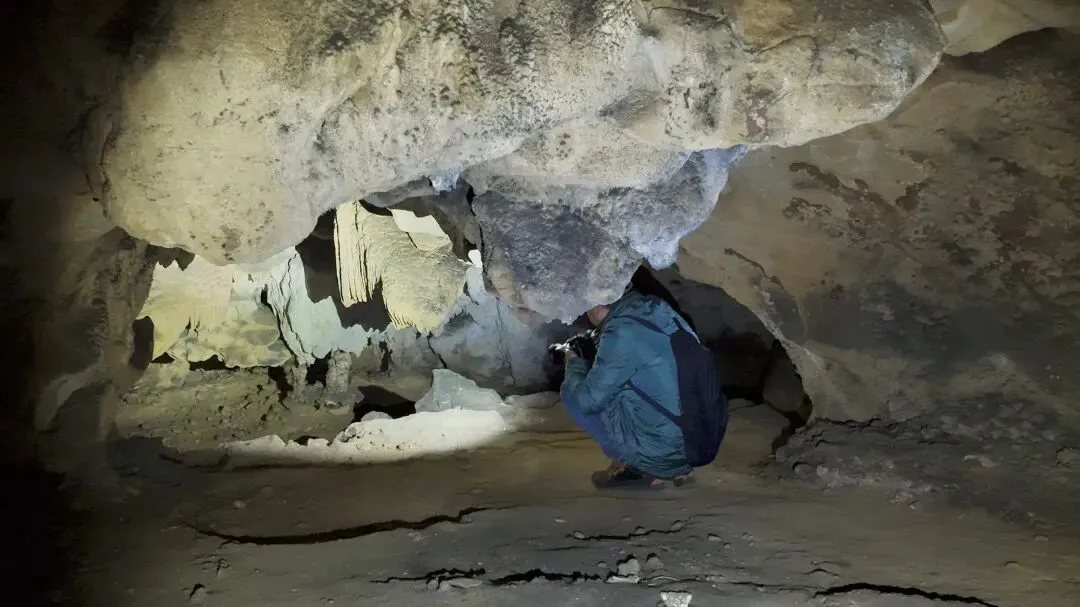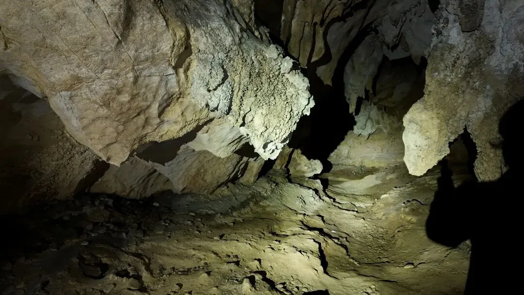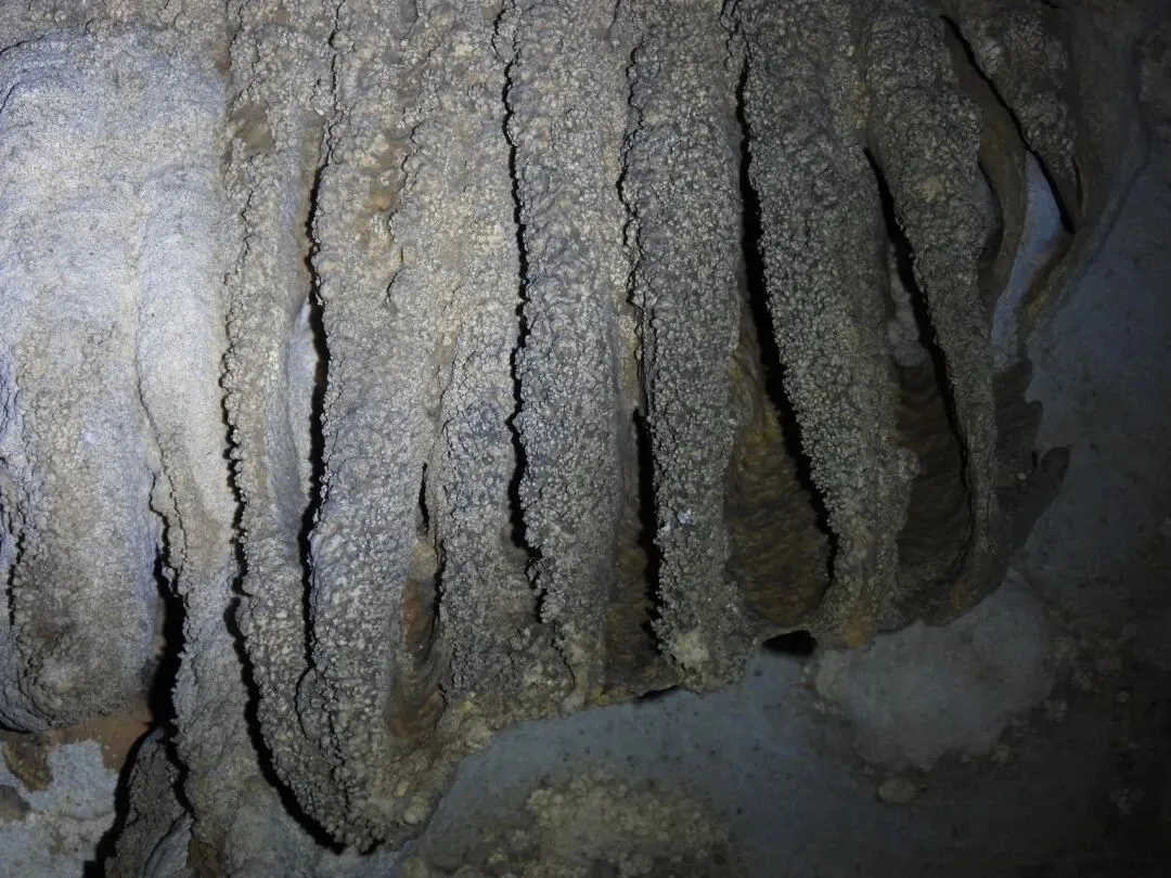 第一次抵达的最后的地方:第一次感觉要弯腰有点艰难就不去了。回来后问老板说弯腰进去后面还有200-300米。第二天想好好看看墙壁的奇石和一些流石,石幔之类的样子,走到第一次终点这里没留意竟然轻易就过去了。之后发现景色太漂亮没来过才发现已经走过这块弯腰的地段了,眼前闪出一大块发光的晶莹的白色的大流石瀑布.流石的形态和光泽是判断溶洞是否仍有活跃水流的重要标志之一,也是极具观赏价值的地质奇观。溶洞上方的地下水溶解了石灰岩中的碳酸钙,形成碳酸氢钙溶液。当水流沿洞壁流下时,压力降低、水分蒸发,碳酸氢钙分解,析出碳酸钙。碳酸钙逐层沉积,日积月累就形成了这种层叠的流石结构。第二次越过第一次的终点一点路走到这块闪光的大流石返回.路线比较熟悉返回的比较快。这个喀斯特地貌古溶洞太神奇了。第二天拍的第一天终点处:对比照片后确认是一个地方.一大堆晶莹闪光的白色流石,像白色流下的钻石瀑布,好漂亮!就是这一堆!这些溶洞里的石幔与流石,不是一朝一夕的偶然,而是亿万吨缓慢穿行的地下水,裹挟着石灰岩,以每百年仅长一点点的长度,在黑暗中沉默堆积,历经数十万乃至上百万年的漫长雕琢,日复一日,年复一年,成了大地最沉默、最漫长的精品作品。第二次终点就走到这里了. 感觉再进去怕有岔路,差不多该看的也都仔细看到了。再进去怕不好分辨方向,也没有头盔和头灯。原路返回。标准生长速度(全球溶洞通用)最常见的钟乳石、石幔、流石:平均 100 年 生长 0.1~1 厘米水质纯净、水流稳定的优质环境:最快 100 年长 1~3 厘米水流快、杂质多的地方:100 年连 0.1 厘米都长不到后来发现山崖上有很多洞洞,估计里面有大部分是空的洞腔。👇🏻都是山崖峭壁上的洞口形状这个洞大概率是进来水道上方透光的洞的入口里面有钟乳石。哇!这块石头太像小狗了!如果山崖上方的的溶洞能进去,估计也是内部很多奇观.只是无法进去。 综合上面的信息,我感觉山体内有很多远古的溶洞。当然这个也是此种地质正常的特点。如果我会飞,就可以上去看看。漫山遍野的藿香蓟-菊科藿香蓟属的一年生草本植物,是云南野外极为常见的野生花卉。原产于热带美洲,现广泛归化于我国云南、广东、广西等南方地区,是云南山野中最常见的野生草本花卉之一。 适应能力极强,能在多种土壤环境中生长,成片分布形成紫色花海。