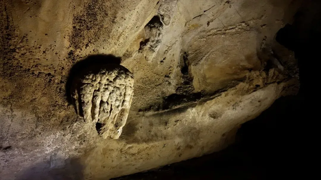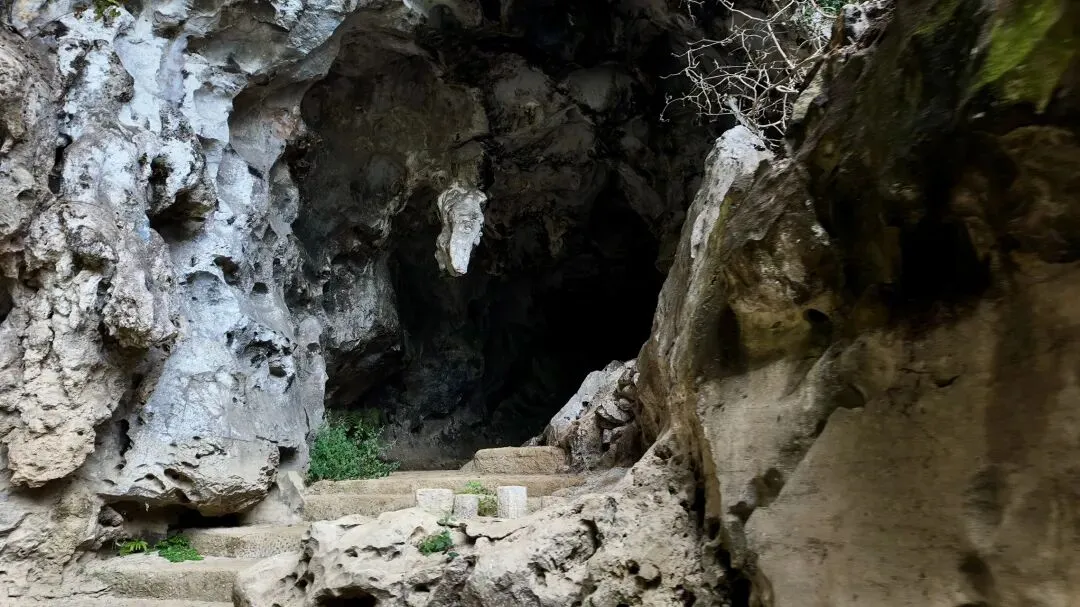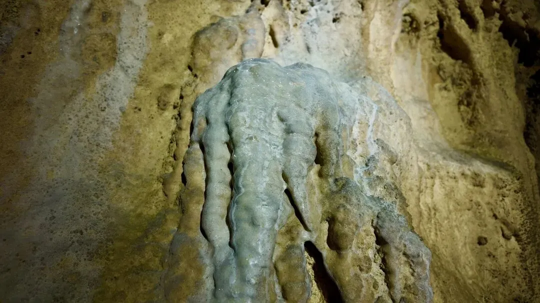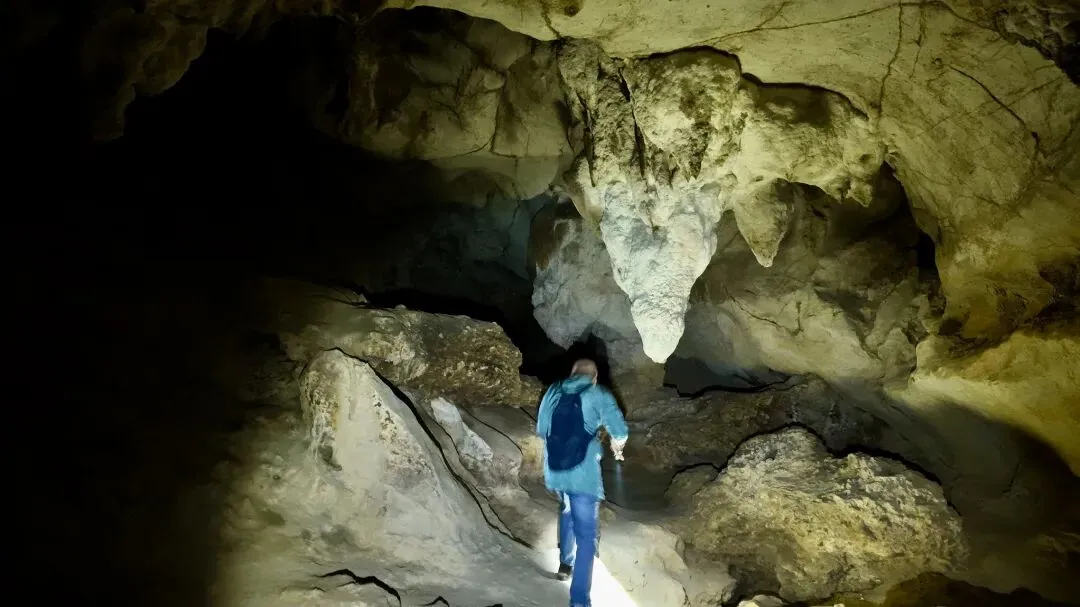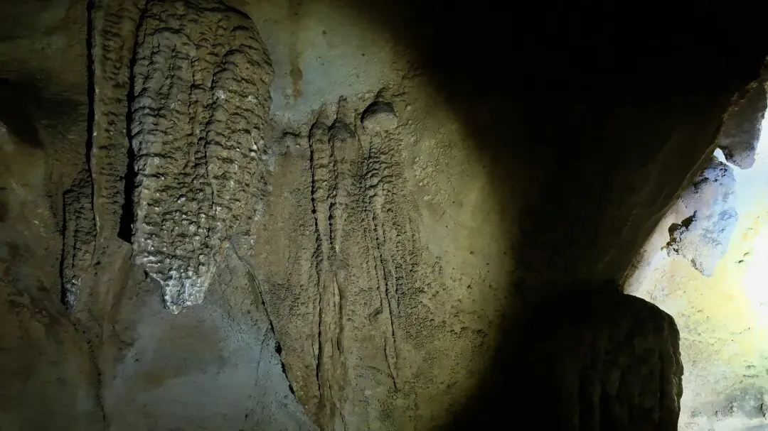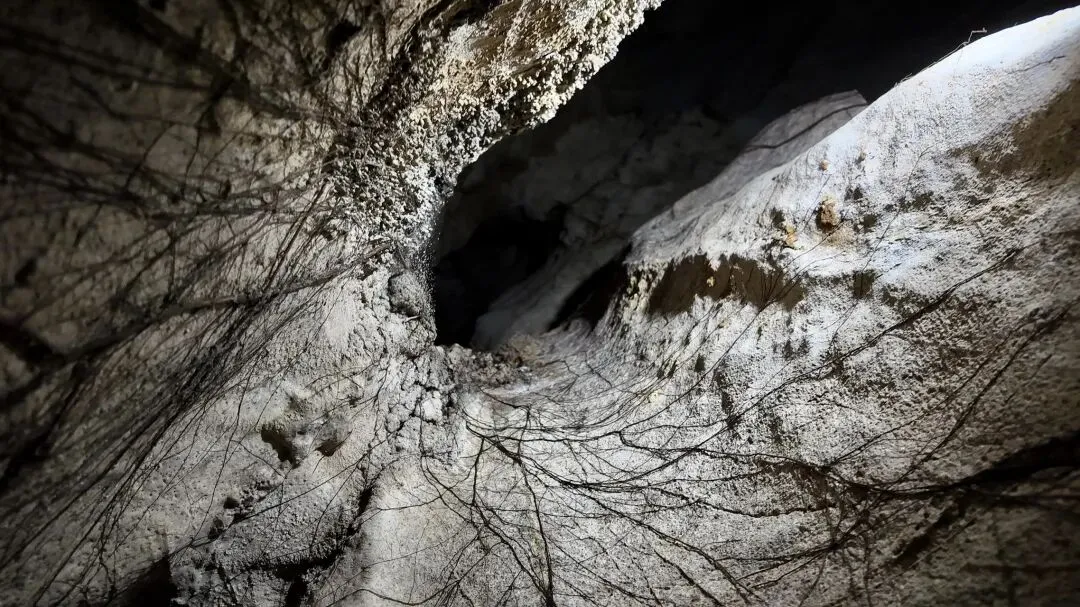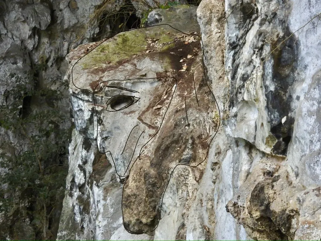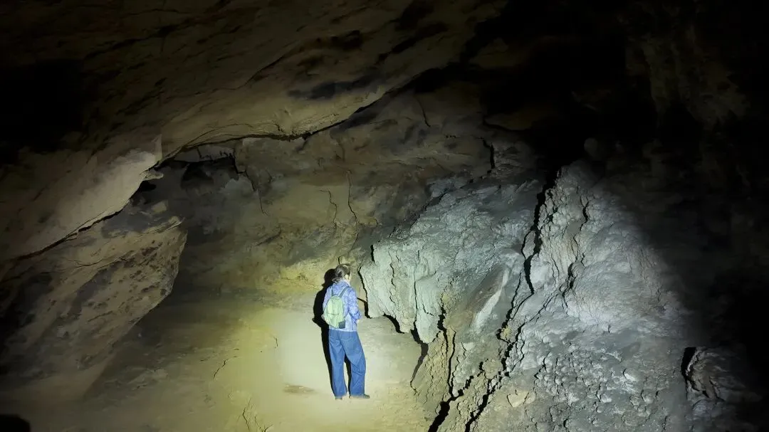 第一次抵达的最后的地方:第一次感觉要弯腰有点艰难就不去了。回来后问老板说弯腰进去后面还有200-300米。第二天想好好看看墙壁的奇石和一些流石,石幔之类的样子,走到第一次终点这里没留意竟然轻易就过去了。之后发现景色太漂亮没来过才发现已经走过这块弯腰的地段了,眼前闪出一大块发光的晶莹的白色的大流石瀑布.流石的形态和光泽是判断溶洞是否仍有活跃水流的重要标志之一,也是极具观赏价值的地质奇观。溶洞上方的地下水溶解了石灰岩中的碳酸钙,形成碳酸氢钙溶液。当水流沿洞壁流下时,压力降低、水分蒸发,碳酸氢钙分解,析出碳酸钙。碳酸钙逐层沉积,日积月累就形成了这种层叠的流石结构。第二次越过第一次的终点一点路走到这块闪光的大流石返回.路线比较熟悉返回的比较快。这个喀斯特地貌古溶洞太神奇了。第二天拍的第一天终点处:对比照片后确认是一个地方.一大堆晶莹闪光的白色流石,像白色流下的钻石瀑布,好漂亮!就是这一堆!这些溶洞里的石幔与流石,不是一朝一夕的偶然,而是亿万吨缓慢穿行的地下水,裹挟着石灰岩,以每百年仅长一点点的长度,在黑暗中沉默堆积,历经数十万乃至上百万年的漫长雕琢,日复一日,年复一年,成了大地最沉默、最漫长的精品作品。第二次终点就走到这里了. 感觉再进去怕有岔路,差不多该看的也都仔细看到了。再进去怕不好分辨方向,也没有头盔和头灯。原路返回。标准生长速度(全球溶洞通用)最常见的钟乳石、石幔、流石:平均 100 年 生长 0.1~1 厘米水质纯净、水流稳定的优质环境:最快 100 年长 1~3 厘米水流快、杂质多的地方:100 年连 0.1 厘米都长不到后来发现山崖上有很多洞洞,估计里面有大部分是空的洞腔。👇🏻都是山崖峭壁上的洞口形状这个洞大概率是进来水道上方透光的洞的入口里面有钟乳石。哇!这块石头太像小狗了!如果山崖上方的的溶洞能进去,估计也是内部很多奇观.只是无法进去。 综合上面的信息,我感觉山体内有很多远古的溶洞。当然这个也是此种地质正常的特点。如果我会飞,就可以上去看看。漫山遍野的藿香蓟-菊科藿香蓟属的一年生草本植物,是云南野外极为常见的野生花卉。原产于热带美洲,现广泛归化于我国云南、广东、广西等南方地区,是云南山野中最常见的野生草本花卉之一。 适应能力极强,能在多种土壤环境中生长,成片分布形成紫色花海。