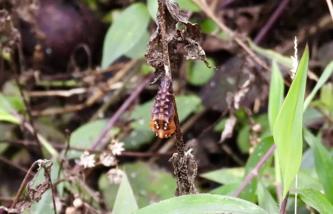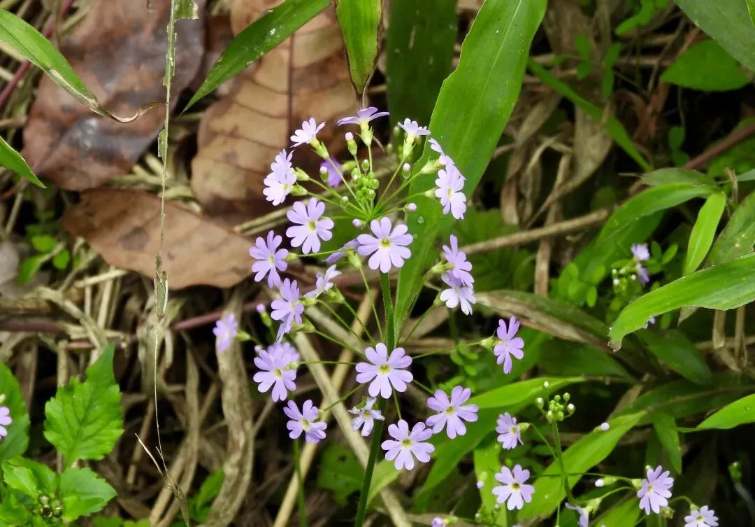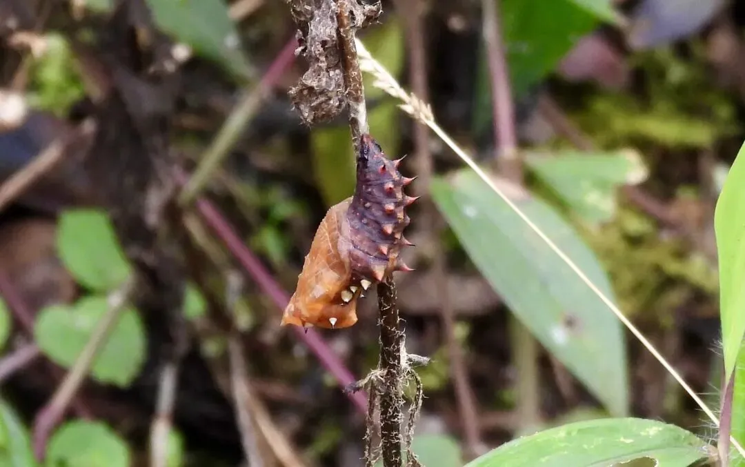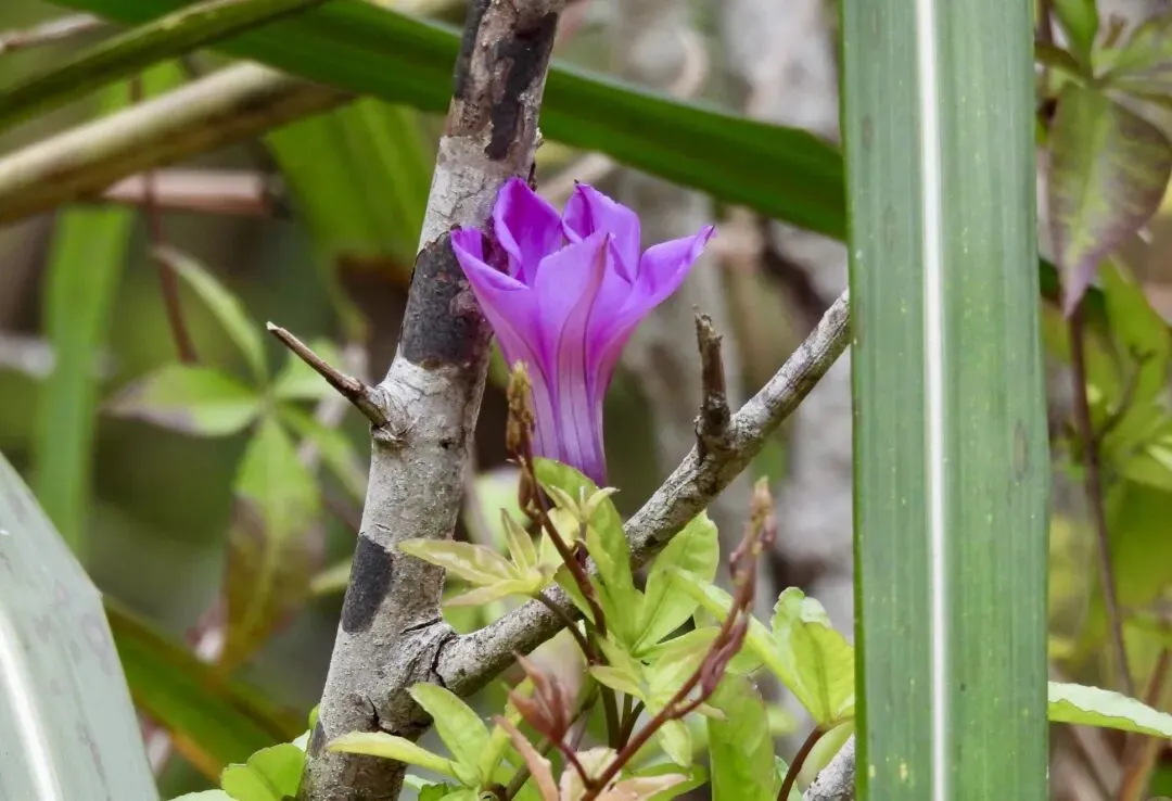 珠颈斑鸠-他乡遇故知-不管在哪里遇到珠颈斑鸠都异常亲切它其实颜色是很闪亮的,但是我们这一天光线没有拍出它应该有的紫色。这个翅膀是在上次去普洱亚太森林组织发现的一个破碎的小翅膀。可以对比看一下颜色。可能是斐豹蛱蝶的蛹-已弃形态特征是纺锤形,颜色以橘红色或红褐色为主,带有黑色疣突和脊突,和图里的外观完全吻合。蝴蝶在云南文山地区很常见,蛹会通过丝带悬挂在枯草或植物茎秆上,等待羽化为成虫。假连翘-马鞭草科假连翘属的常绿灌木。果实为球形,成熟时呈橙黄色或橙红色,成串密集生长在枝条上,原产于热带美洲,在云南文山等南方地区广泛栽培,逃逸为野生。它喜温暖湿润、阳光充足的环境,花期长,花果同期。假连翘的果实和叶片有毒,不可食用.白花泡桐,玄参科泡桐属的落叶乔木。还没有完全开花. 完全开花后是会很漂亮的泡桐的枯花序与蒴果,下垂的褐色结构是泡桐去年的枯败花序,而悬挂的长椭圆形木质结构是它的蒴果,成熟后会开裂并释放细小的种子。泡桐是先花后叶的速生树种,在云南文山地区花期为2-4月,花谢后花序不会立即脱落,会留存至次年,与新的花果同期出现,泡桐的枯花序和蒴果能为越冬昆虫提供栖息场所小报春-报春花科报春花属的植物,在云南地区很常见,粉紫色,呈伞形. 满地都是,很精致.铜锤玉带草,桔梗科铜锤玉带属的多年生匍匐草本植物。生长习性:铜锤玉带草在云南文山地区的阴湿草地、沟边、林下极为常见.马缨丹-马鞭草科马缨丹属的常绿灌木。原产于热带美洲,在云南文山等南方地区广泛逸生,喜温暖湿润、阳光充足的环境,花期几乎全年,适应性极强,常成为路边、荒地的优势物种。密蒙花(也叫染饭花、黄饭花)马钱科醉鱼草属的直立灌木。是文山特色美食“花米饭”的染色原料,用其花煮水可将糯米染成金黄色.