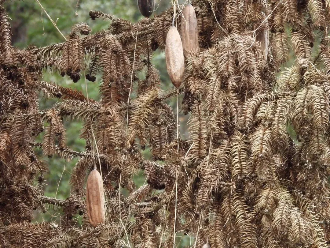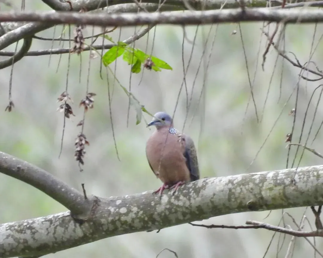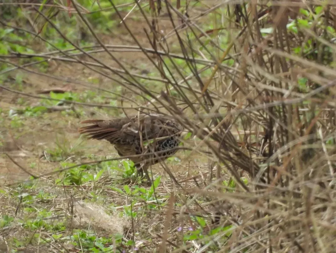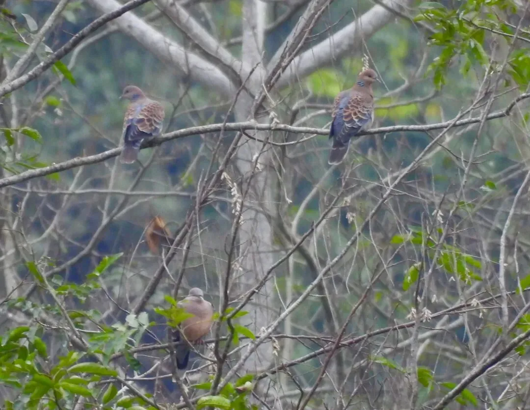 珠颈斑鸠-他乡遇故知-不管在哪里遇到珠颈斑鸠都异常亲切它其实颜色是很闪亮的,但是我们这一天光线没有拍出它应该有的紫色。这个翅膀是在上次去普洱亚太森林组织发现的一个破碎的小翅膀。可以对比看一下颜色。可能是斐豹蛱蝶的蛹-已弃形态特征是纺锤形,颜色以橘红色或红褐色为主,带有黑色疣突和脊突,和图里的外观完全吻合。蝴蝶在云南文山地区很常见,蛹会通过丝带悬挂在枯草或植物茎秆上,等待羽化为成虫。假连翘-马鞭草科假连翘属的常绿灌木。果实为球形,成熟时呈橙黄色或橙红色,成串密集生长在枝条上,原产于热带美洲,在云南文山等南方地区广泛栽培,逃逸为野生。它喜温暖湿润、阳光充足的环境,花期长,花果同期。假连翘的果实和叶片有毒,不可食用.白花泡桐,玄参科泡桐属的落叶乔木。还没有完全开花. 完全开花后是会很漂亮的泡桐的枯花序与蒴果,下垂的褐色结构是泡桐去年的枯败花序,而悬挂的长椭圆形木质结构是它的蒴果,成熟后会开裂并释放细小的种子。泡桐是先花后叶的速生树种,在云南文山地区花期为2-4月,花谢后花序不会立即脱落,会留存至次年,与新的花果同期出现,泡桐的枯花序和蒴果能为越冬昆虫提供栖息场所小报春-报春花科报春花属的植物,在云南地区很常见,粉紫色,呈伞形. 满地都是,很精致.铜锤玉带草,桔梗科铜锤玉带属的多年生匍匐草本植物。生长习性:铜锤玉带草在云南文山地区的阴湿草地、沟边、林下极为常见.马缨丹-马鞭草科马缨丹属的常绿灌木。原产于热带美洲,在云南文山等南方地区广泛逸生,喜温暖湿润、阳光充足的环境,花期几乎全年,适应性极强,常成为路边、荒地的优势物种。密蒙花(也叫染饭花、黄饭花)马钱科醉鱼草属的直立灌木。是文山特色美食“花米饭”的染色原料,用其花煮水可将糯米染成金黄色.
