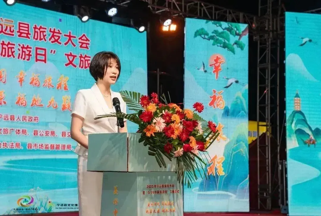 李玲在致辞中指出,2023年宁远县旅发大会暨“5·19中国旅游日”文旅宣传活动的举行,目的就是延续千年文脉、传承弘扬舜德文化,展示旅游发展成果,建设新时代的文旅强县。