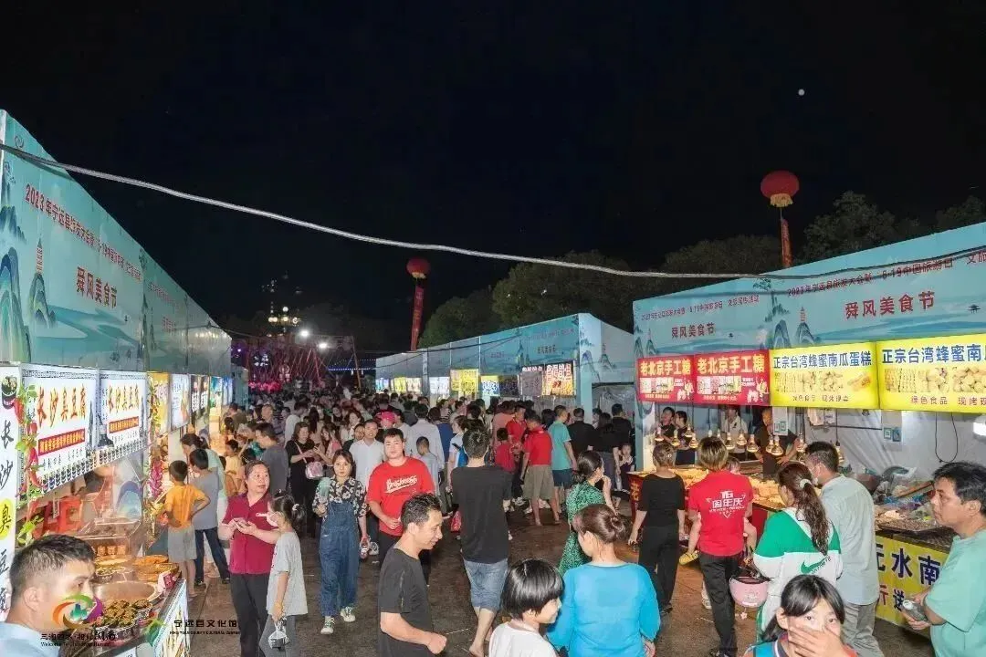 活动现场除了精彩纷呈的民俗节目表演,舜风美食节也同步热闹开展,各网红美食店、农副产品店在场内进行展销交易,现场人头攒动,烟火气十足。
