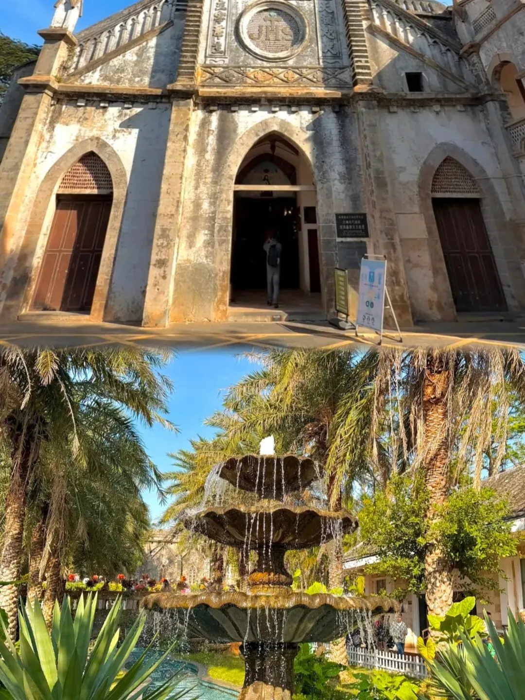 - 09:00-10:30 打卡盛塘天主教堂(免费,晚清四大天主教堂之一),全珊瑚石搭建的哥特式建筑,衣着得体,后院芒果林拍法式复古大片。