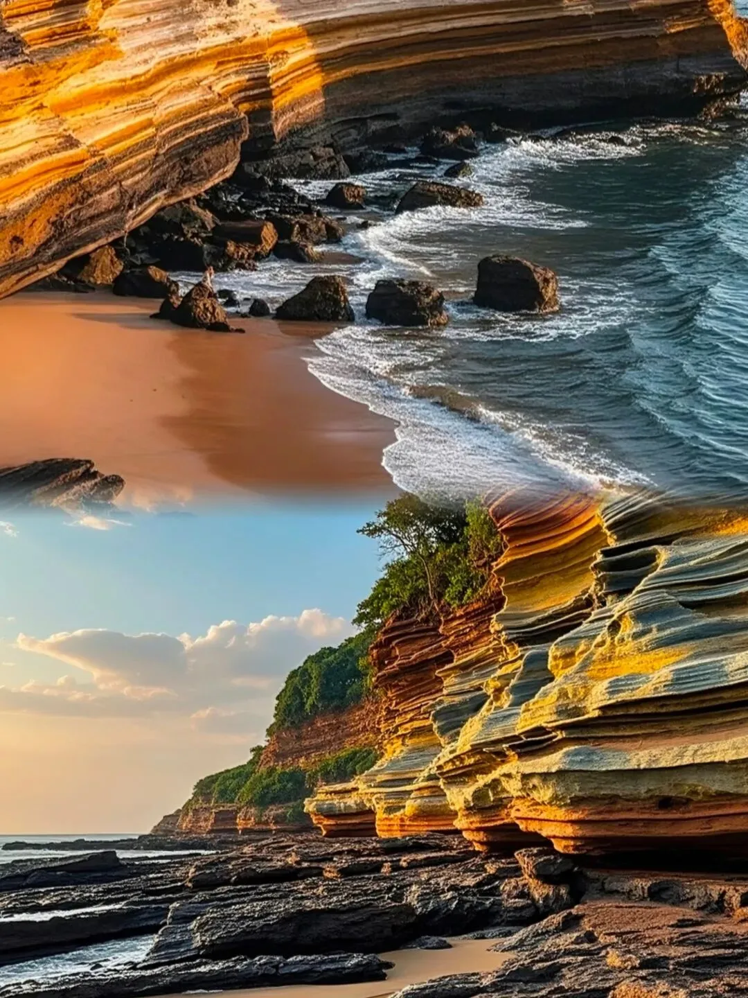 - 05:00-05:30 抵达五彩滩(提前查潮汐,退潮最佳),看海上日出,打卡数十米彩色海蚀平台,体验赶海捡螺/抓小蟹。