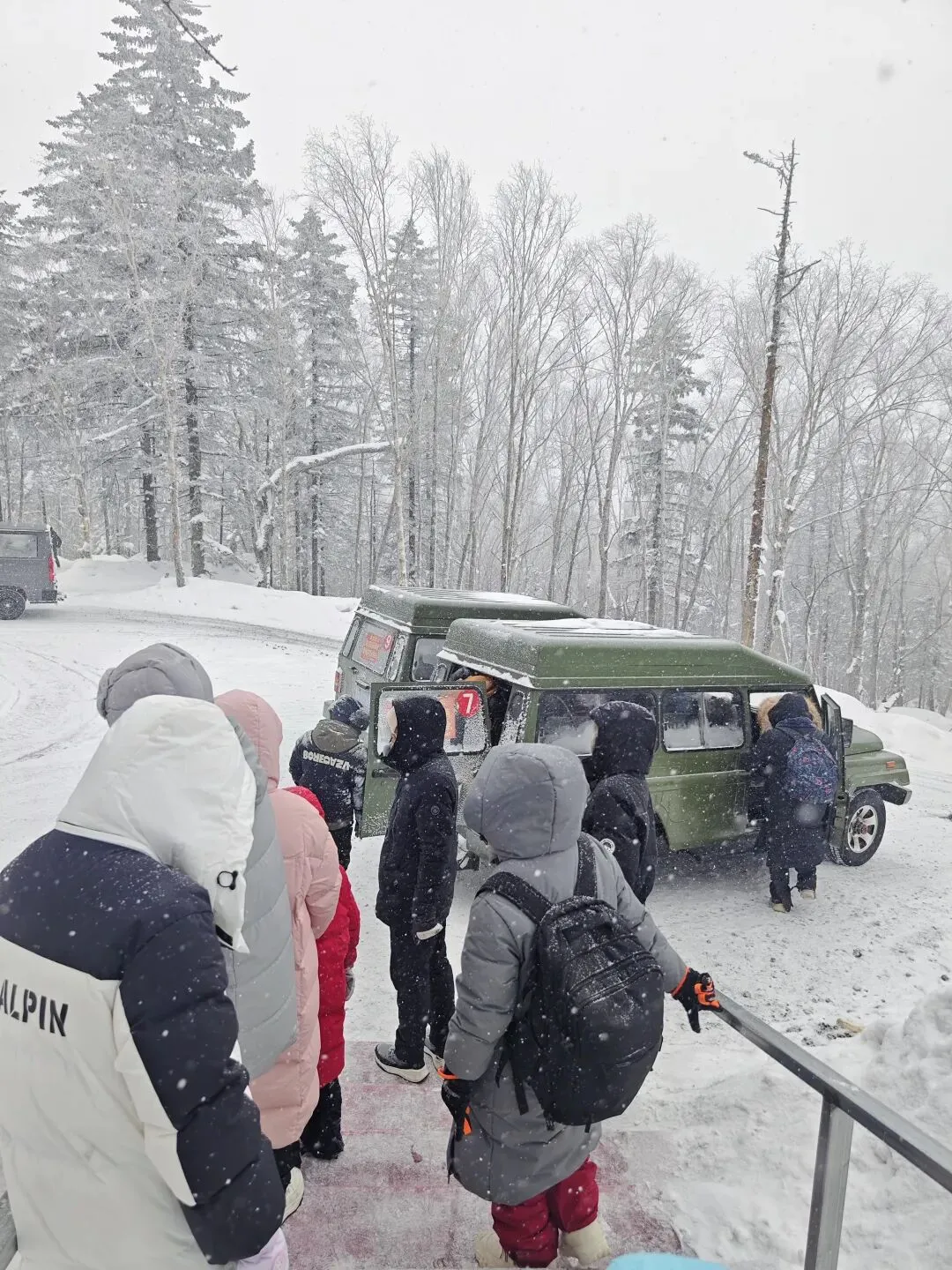 前一天在去雪乡的路上,还是玩得挺开心的,因为5点半就出发,赶了大早,所以比其他团的人早到,不然排队。去了大秃顶子山,其实就在山里走了一圈,超懵,完全不像旅行,感觉为了赶路似的。反正就是个纯旅行团开发的景区,全是人造风景,没意思的。