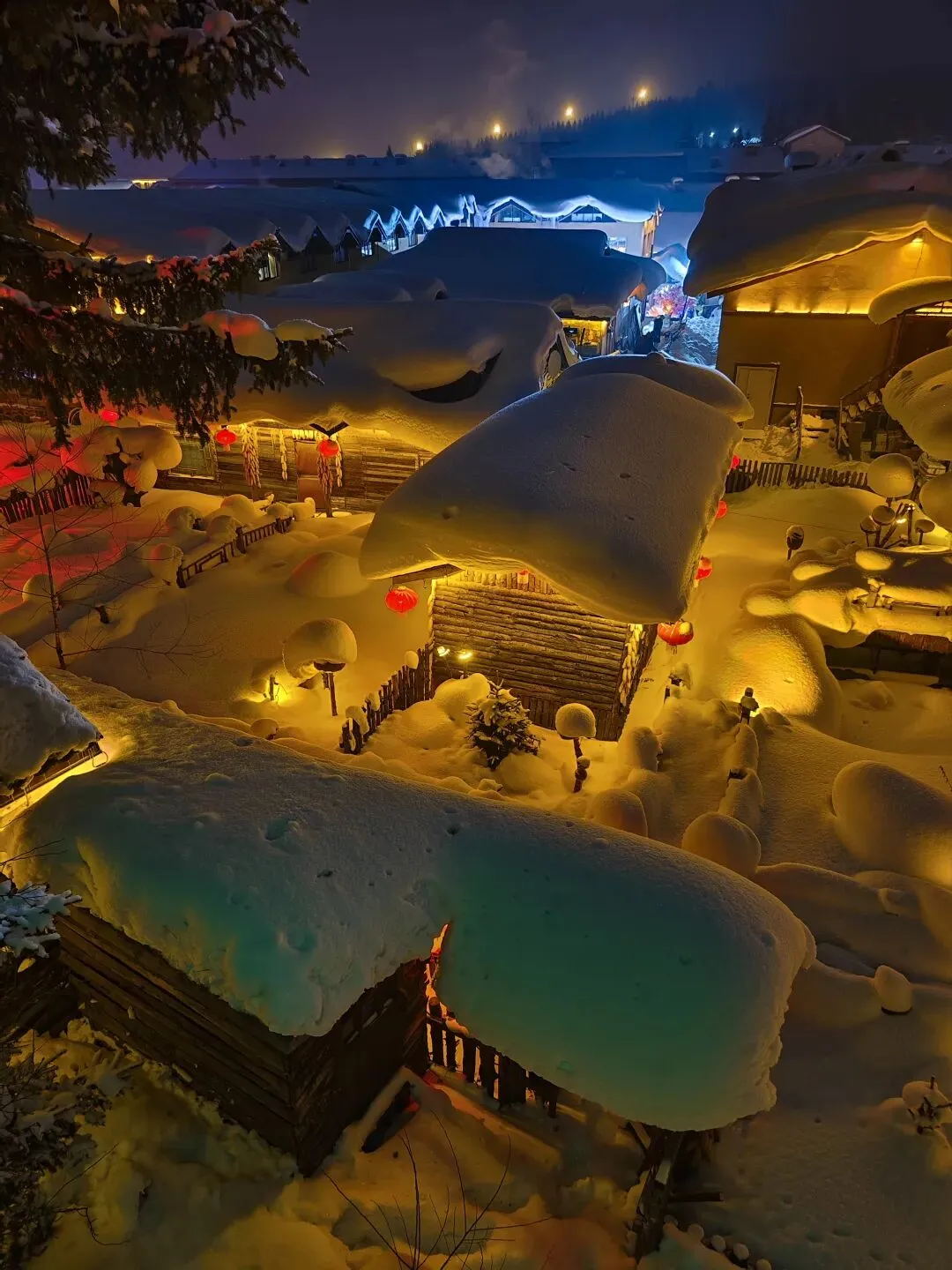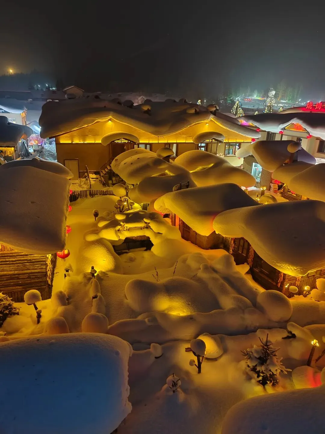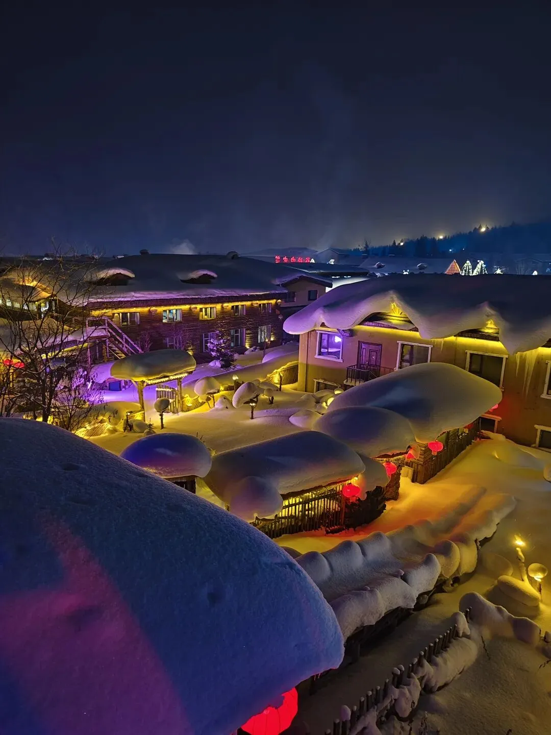 晚上赶到了雪乡,雪乡才是重点,可以在童话小镇的门牌进去后,爬到了楼梯上,拍照打卡,那个景的确很美,很像童话世界一样梦幻。这才是雪乡的重点,之后就广场上野外蹦迪,在户外零下十几度蹦迪,也是不错的体验。之后在原地看5分钟的烟花,就赶去看雪乡情景剧,那个还不错。之后就慢慢逛雪乡,花两个小时左右就逛完了。雪乡还是值得去的。如果去雪乡拍写真,记得货比三家,看看摄影师水平如何,我那家实在是太一般了,还不如我自己手机拍。那图,我是拿回底片自己回去修的。我想要的是写真照,他拍成了旅客照,相当无语😓。