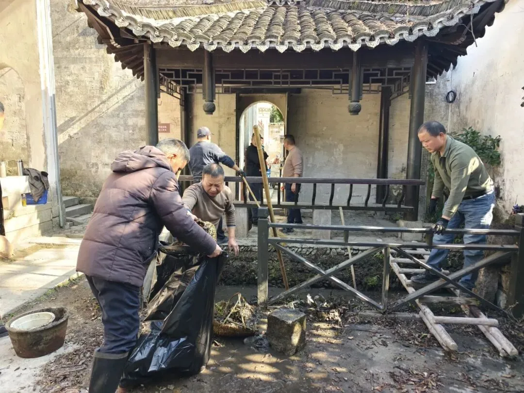 1月14日,宏村景区与宏村村、星源物业公司携手,共同开展水圳清淤专项行动。景区党员、团员志愿者与村民、保洁员携手合作,对水圳中经年沉积的淤泥、枯枝落叶以及各类杂物进行彻底铲除和清运,有效恢复了水系的通畅与洁净。