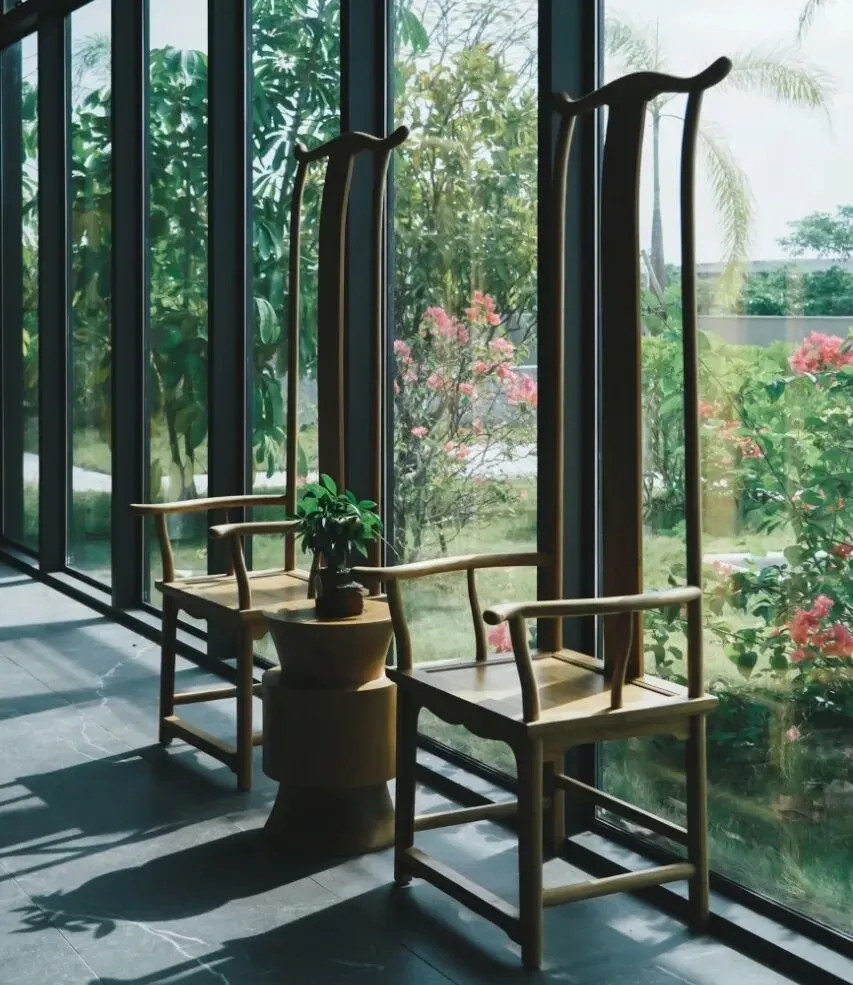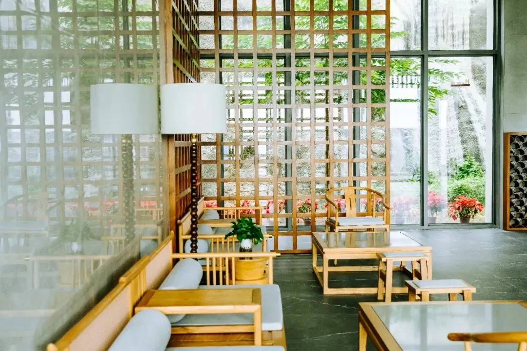 走进酒店,大堂的风格就让人眼前一亮,原木装潢、禅意设计,宁静淡雅,古色古香。