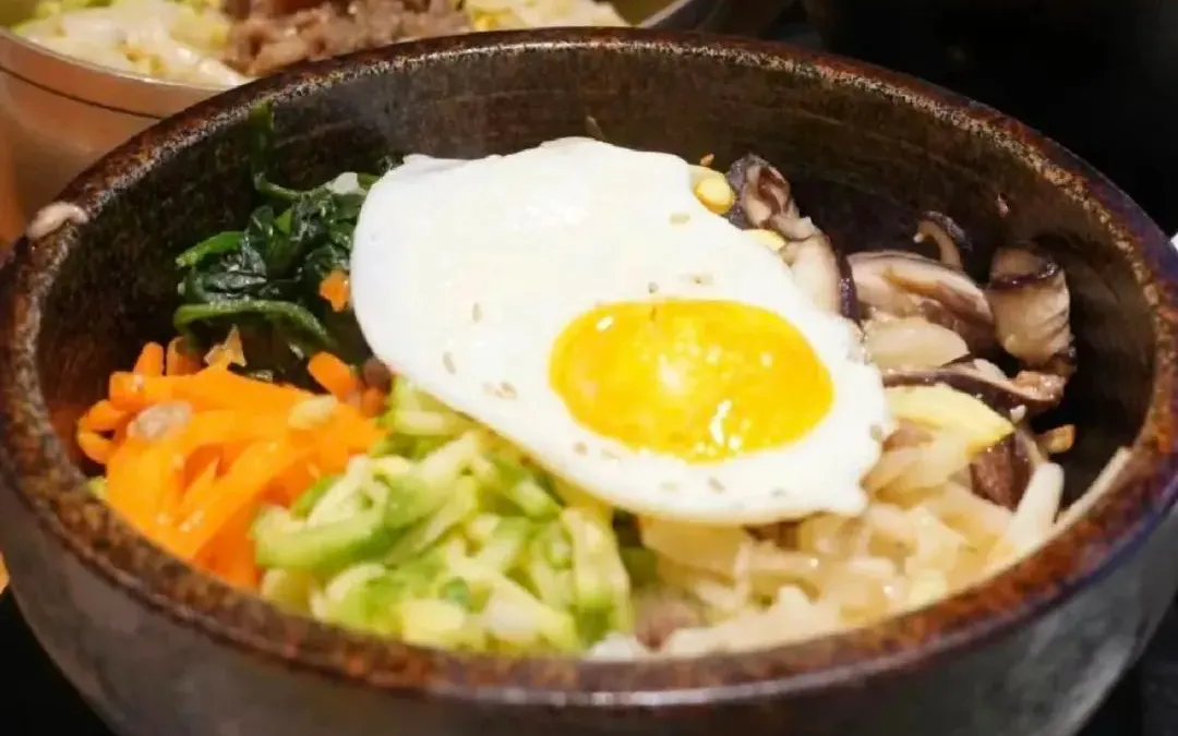 石锅拌饭:朝鲜族特有的米饭料理,在滚烫的石锅内依次铺上米饭、各种蔬菜(如黄豆芽、菠菜、胡萝卜丝等)、肉类(牛肉居多),再加上一颗诱人的溏心蛋。食用时,将食材与特制酱料充分拌匀,锅底的米饭会被烤出一层香脆锅巴,每一口都充满了浓郁的米香、菜香与酱香,营养丰富又美味。