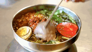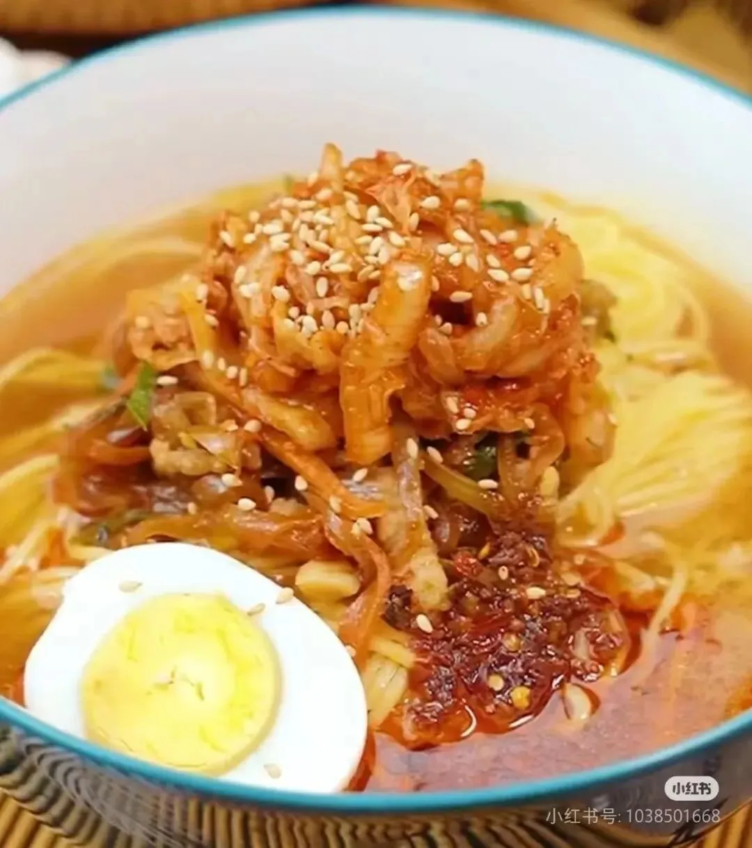 冷面:这可是延吉美食的招牌担当!以荞麦面为主料,面条筋道爽滑。搭配上酸甜可口的冰凉汤底,里面还有牛肉片、苹果片、泡菜、黄瓜丝等丰富配菜,入口瞬间,酸甜开胃,驱散一身燥热,绝对是延边夏日餐桌上的宠儿。