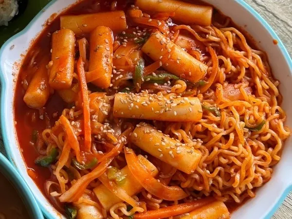 炒年糕拉面:延吉常见美食,将拉面、年糕、蔬菜(白菜、洋葱等)、鱼饼等食材一起炒制,年糕软糯有嚼劲,拉面吸收了浓郁的汤汁,各种食材在锅中碰撞出美味的火花,热气腾腾的一碗,特别满足。