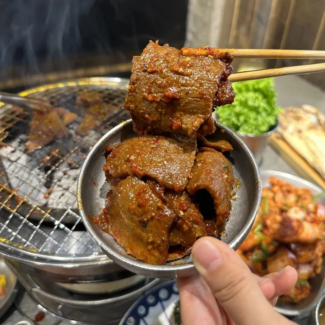 朝鲜族特色烤肉:首推延边黄牛肉,肉质鲜嫩多汁,脂肪与蛋白质分布均匀。采用石板炙烤,能最大程度保留牛肉的油脂与香味。烤好的牛肉搭配生菜、紫苏叶等蔬菜,裹上烤肉酱或干料,放入口中咀嚼,肉香、菜香与酱料香完美融合。除了牛肉,猪五花、牛舌、牛腰、羊排、海鲜(鱿鱼、虾等)、烤肠等也都是石板烤肉的热门选择,每一种都有独特的风味。