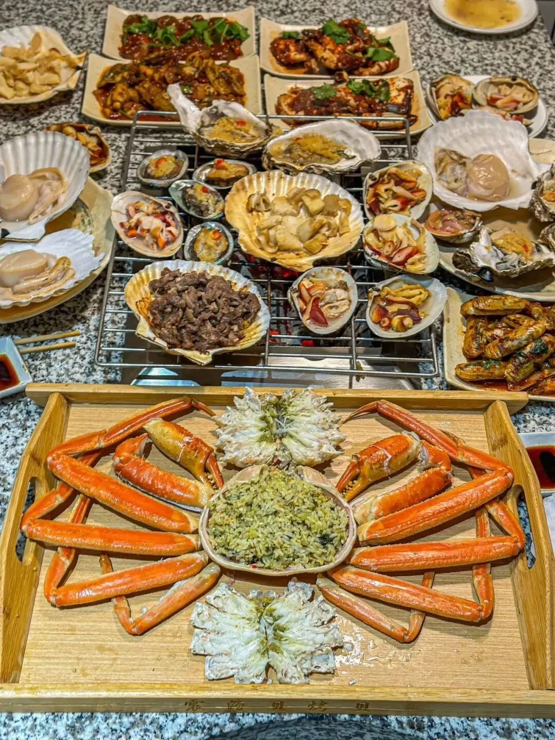 烤海鲜:延吉虽不临海,但凭借便利的交通,能吃到新鲜肥美的各类海鲜。常见的有鱿鱼、大虾、扇贝、生蚝等,经炭火或石板烤制后,海鲜的鲜美被充分激发。其中烤帝王蟹堪称海鲜烧烤中的 “顶流”,选用鲜活的帝王蟹,简单处理后直接烤制,不添加过多调料,最大程度保留其原汁原味。