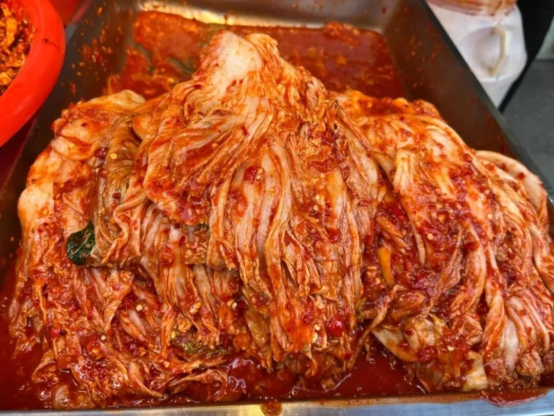 辣白菜:朝鲜族传统发酵美食,白菜经过腌制后,加入辣椒、蒜、姜、糖等调料,经过一段时间发酵,酸辣可口,具有丰富的乳酸菌,开胃助消化,是延边人餐桌上常见的配菜,也可单独当作小吃食用。