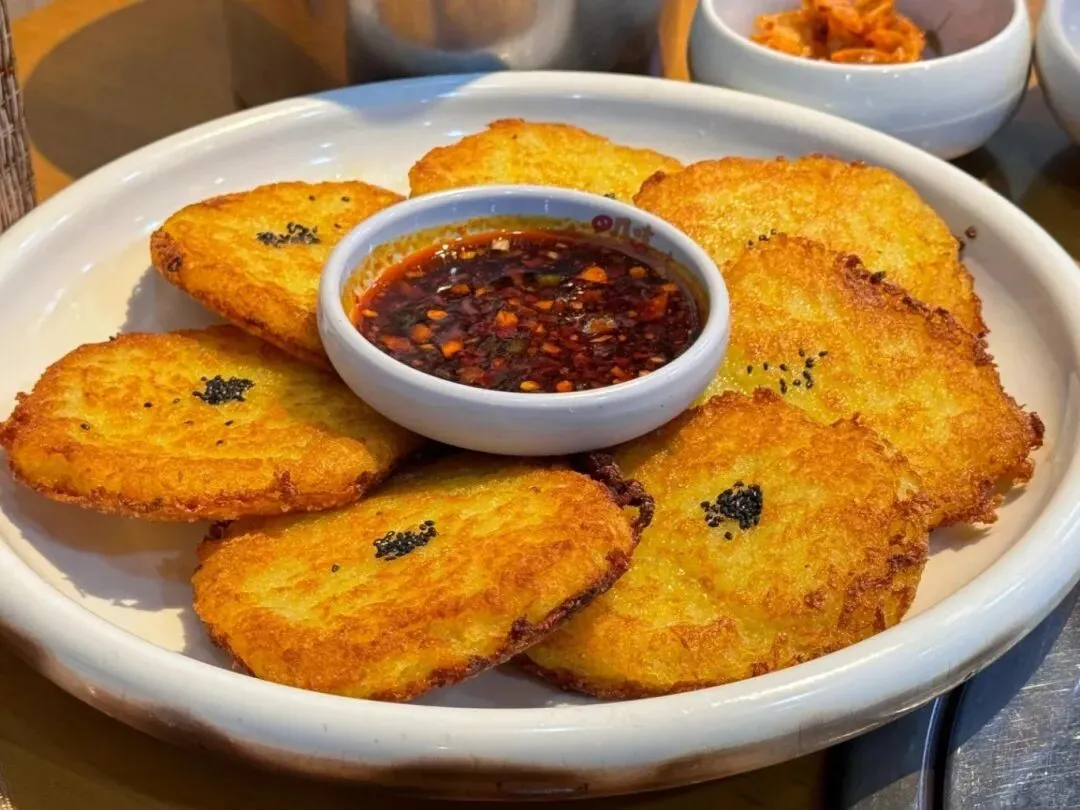 土豆饼:朝鲜族传统美食,将新鲜土豆磨成末,混合一定比例的淀粉,煎制而成。土豆饼外焦里嫩,口感软糯清香,散发着浓郁的土豆香气,是老少皆宜的美味小吃。