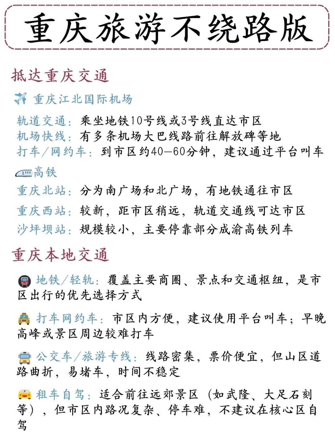 🚄 高铁:优选“重庆北站”,离市区近,交通方便