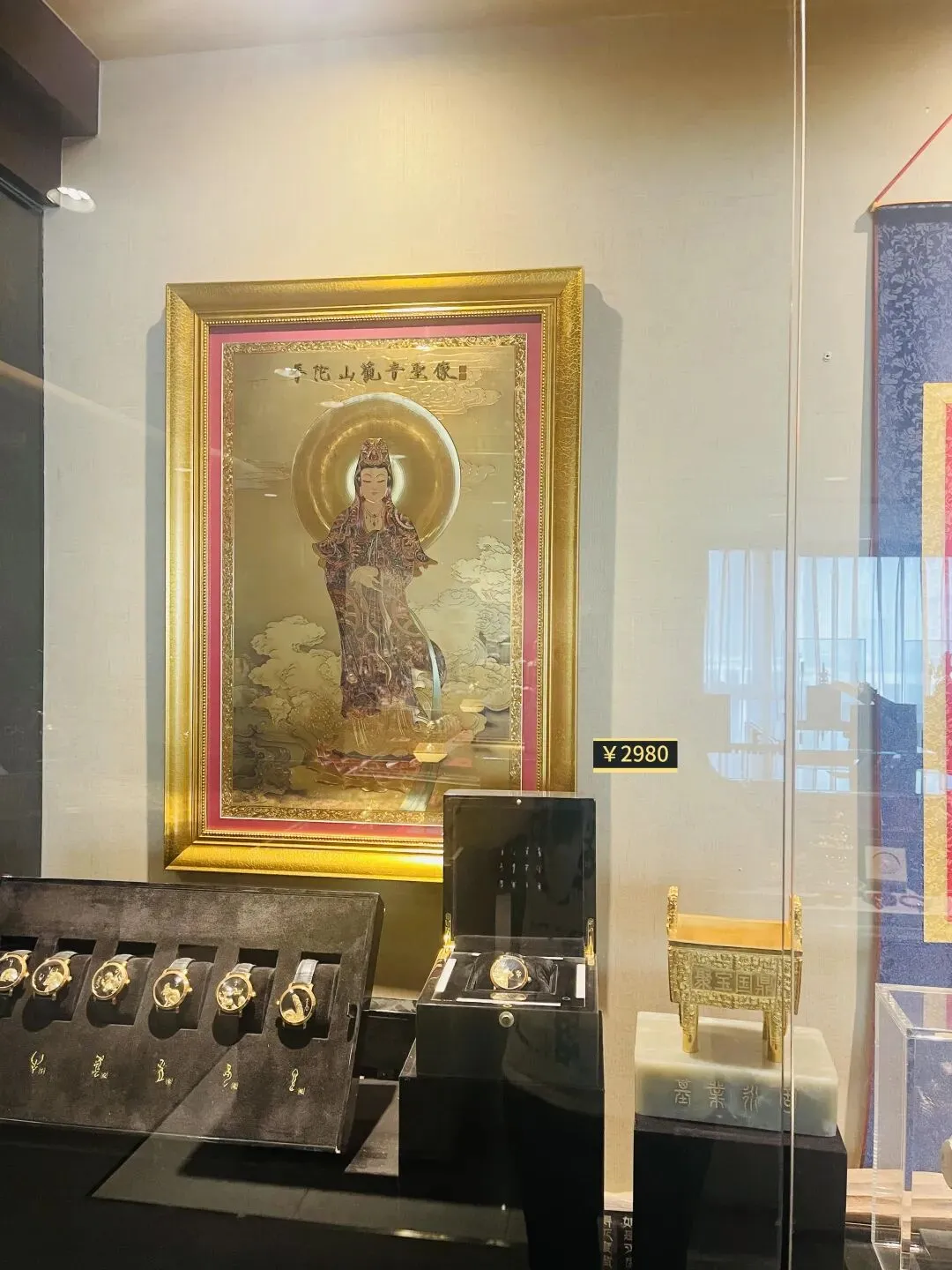 普陀山景区工艺品线下专柜卖2998元的观音画像