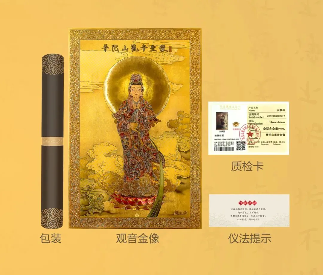 做工精致,寓意美好 观音文化是普陀山的文化符号,而【观音金像】是信念的刻画,是吉祥的光辉。