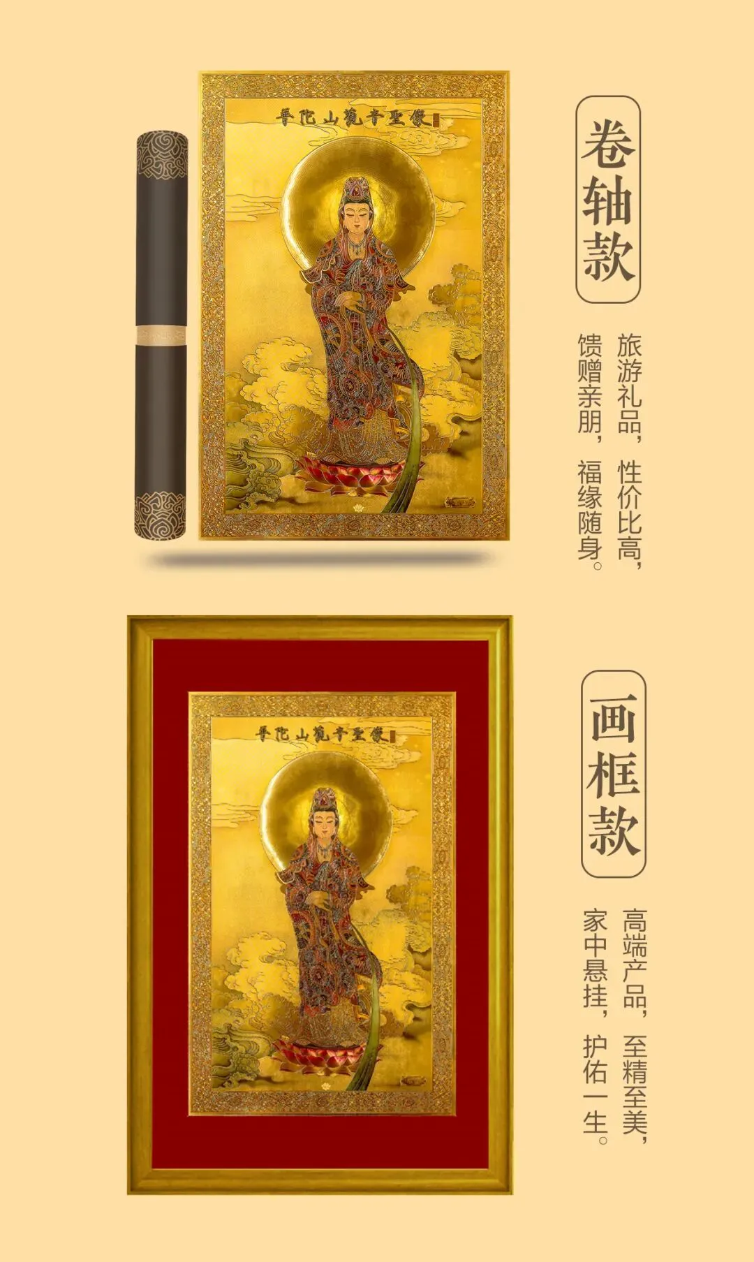 到手实物不含画框,画框仅为装裱参考▲ 普陀山官方授权出品,支持溯源!假一赔十! 强烈建议每个中国家庭都应该收藏一幅,接观音,接好运。