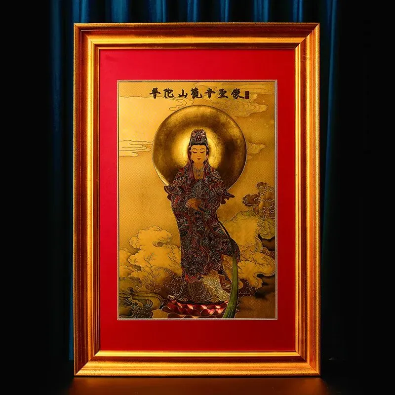 摆放、悬挂观音画像,是对幸福生活的追求与期盼。作为一种艺术品,可以用于装饰家庭书房或办公室,增添一份宁静与祥和的氛围。