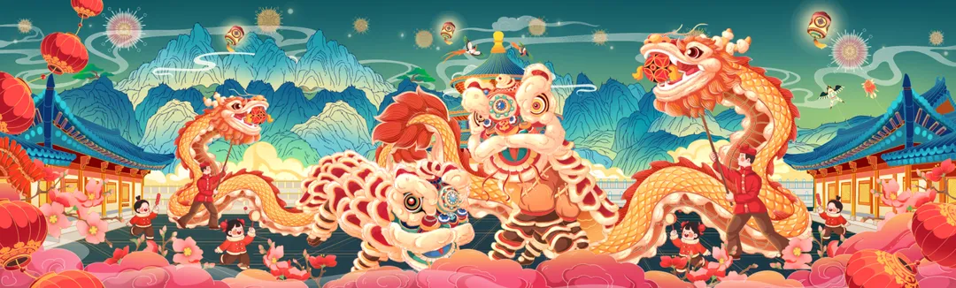 舞狮献瑞,恭祝鸿运