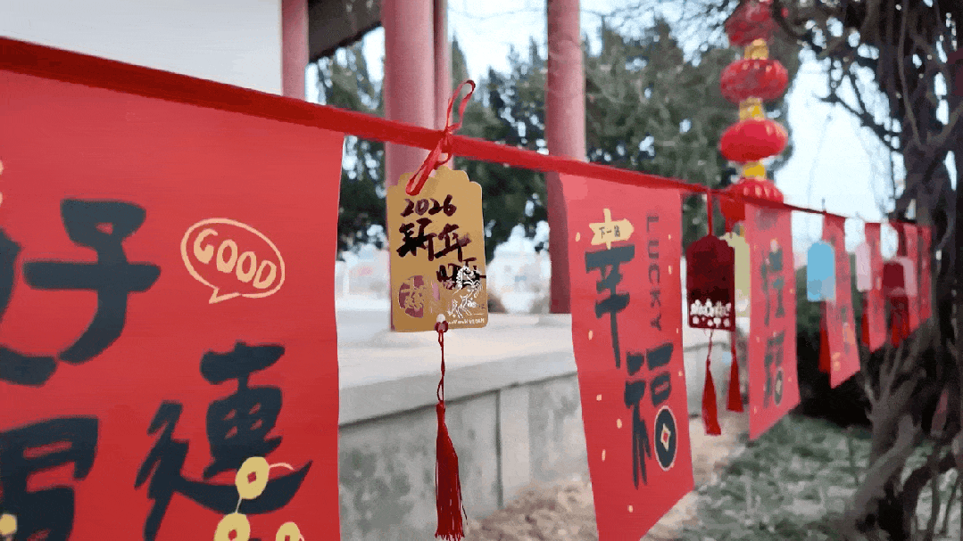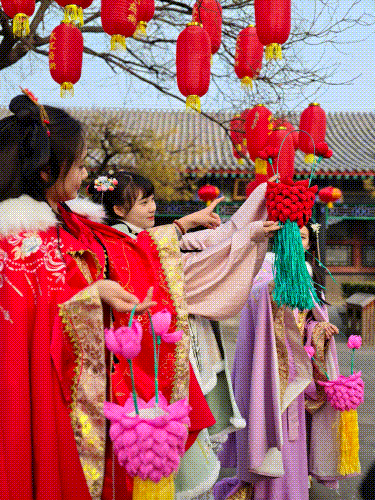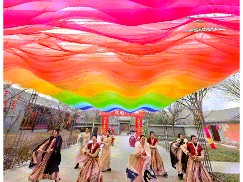 七彩天幕、灯笼高挂、红绸迎福