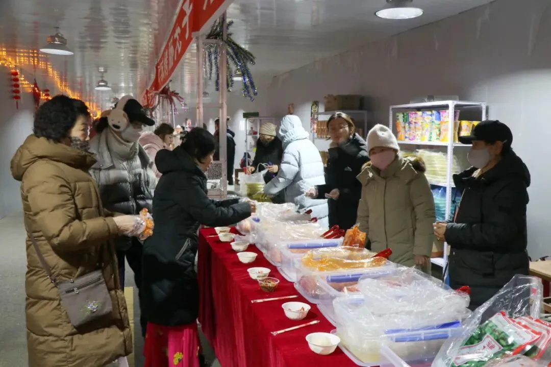 星火集市内,“年味工坊·美食体验”板块热闹开街。集市集中展销特色朝鲜族生活用品、辣白菜、打糕、米肠等民俗食品,村民阿姨现场讲解食材与制作工艺,试吃区香气四溢。民俗手工体验区里,游客在传承人指导下制作打糕、辣白菜饺子,体验朝鲜族服饰租赁打卡,免费试喝朝鲜族米酒,沉浸式感受朝鲜族民俗的独特魅力。