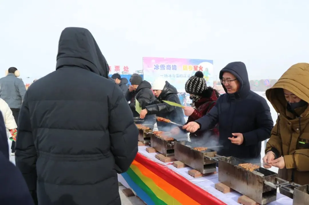 景区雪乐园成为冬日欢乐主场,“雪嬉丰年·冰雪竞技”环节趣味十足。景区设置30米“百米福串”免费烤串互动区,10:00-18:00整点发放烤串,全天共送出5000串,游客可自助烧烤,安全员全程护航。冰坑逃脱、投壶、套圈、雪地颠足球、拉雪圈、出溜滑比拼、冰壶七大冰雪项目同步开启,游客踊跃参与,在冰雪世界中尽情释放活力,尽享竞技乐趣。
