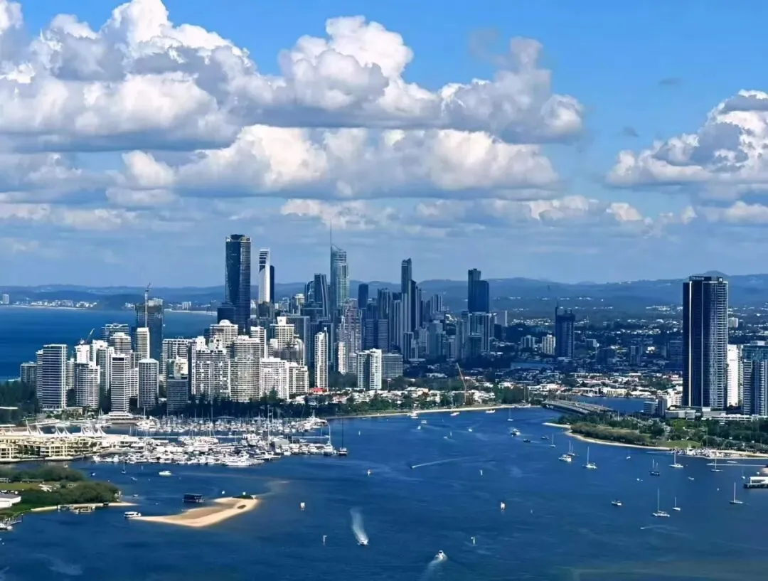 这是我最期待的项目!选的是罗宾逊 R44 轻型直升机,荷载 4 人,我和另外一对情侣拼机,刚好坐满。5 分钟的飞行时间,75 公里的金色沙滩与湛蓝海湾尽收眼底 —— 从空中看,冲浪者天堂的沙滩像一条鎏金丝带,与蓝绿色的太平洋缠在一起,Q1 大厦 322 米的高度在海岸线上格外显眼,SkyPoint 旋转餐厅的玻璃穹顶反射着阳光。飞行员会实时讲解,比如 “左手边那片浪区是冲浪冠军米克・范宁常去的秘密基地,每年 3-5 月能看到他来训练”“远处的伯利岬是本地人的冲浪圣地,人少浪好”。飞行时有点小紧张,但看到美景瞬间觉得值了,同行的情侣还让飞行员帮忙拍了空中合影,氛围感拉满!