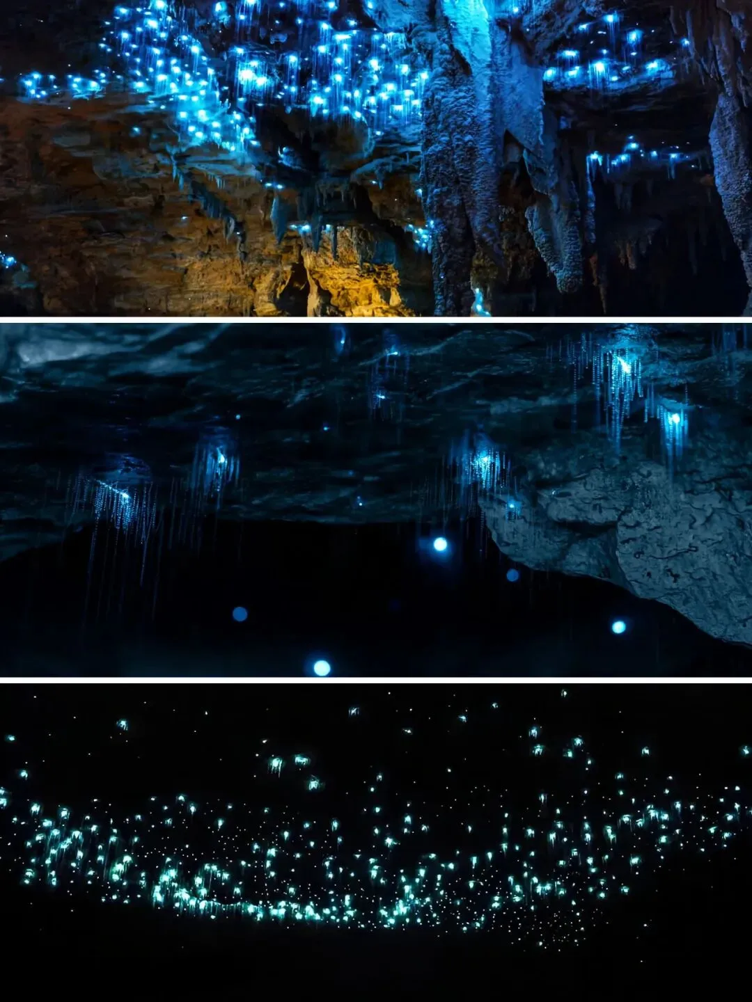这是我心中的 “封神项目”!乘船进入洞穴的瞬间,所有声音都消失了,只剩下漫天闪烁的绿光,像银河落进了人间。成千上万的萤火虫附着在洞壁上,光影倒映在水面上,那种静谧与震撼,一辈子都忘不了。导游介绍,这里的萤火虫是新西兰特有品种(Arachnocampa luminosa),一生只发光一次,寿命只有 1 年,它们通过发光吸引猎物,光的亮度还能反映出萤火虫的健康状况。同行的小朋友一开始有点害怕黑,后来看得眼睛都亮了,全程保持安静,生怕惊扰了这些小精灵。