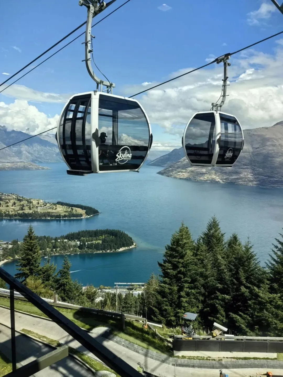 南半球最陡的缆车果然名不虚传,倾斜度 37.1 度,上山的过程既刺激又好玩。缆车全长 1080 米,从山脚到山顶只需 4 分钟,沿途能看到瓦卡蒂普湖的全景,湖水蓝得像宝石。山顶的海鲜自助更是惊喜,帝王蟹腿、三文鱼刺身、生蚝无限供应,还有新西兰特有的青口贝,肉质饱满鲜甜。搭配着窗外的山湖落日(晚上 8 点半才日落,夏季超长日照太爽了),每一口都是幸福的味道。我和朋友边吃边看风景,不知不觉就吃多了,最后还打包了一块芝士蛋糕当宵夜。