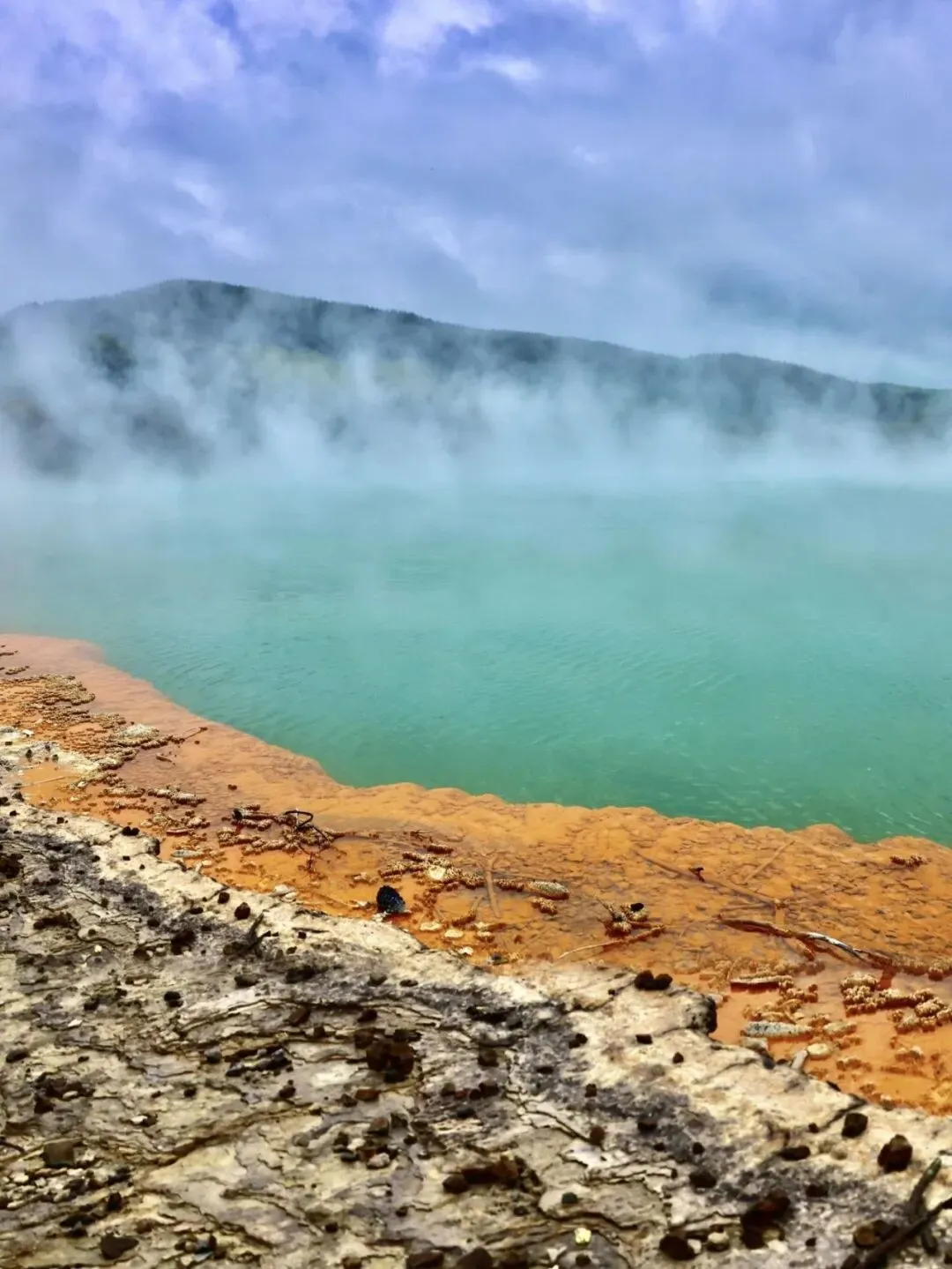 在这里不仅能看到壮观的地热奇观(间歇泉每隔 15 分钟喷发一次,水柱高达 10 米,热气腾腾),还能亲历毛利人的哈卡舞表演。舞者们赤裸上身,脸上画着传统图腾,气势磅礴的动作、洪亮的呐喊,让人瞬间感受到毛利部落的豪迈与传承。还有新西兰国鸟 “奇异鸟”,圆滚滚的样子超可爱,躲在草丛里偶尔探出头,特别呆萌(奇异鸟是夜行动物,白天很少出来,我们运气好才看到)。导游还教了我们几句简单的毛利语,“Kia ora” 是你好的意思,“Ka kite ano” 是再见,学起来超有趣。