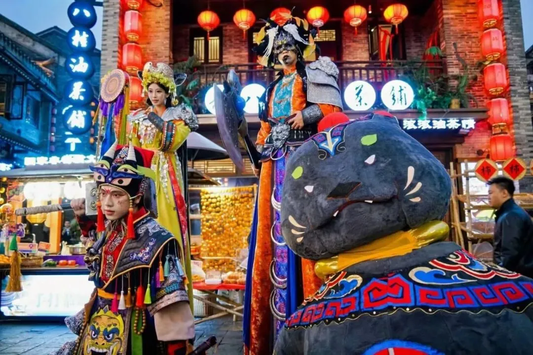 夜晚的广旅·南宁之夜,“马上有戏·新春仙游记”春节主题活动氛围感拉满。 初四至初六财神送“黄金雨”、搭配醒狮、高跷巡游、神仙NPC互动等丰富多彩的主题活动,满是新春福运与仪式感。