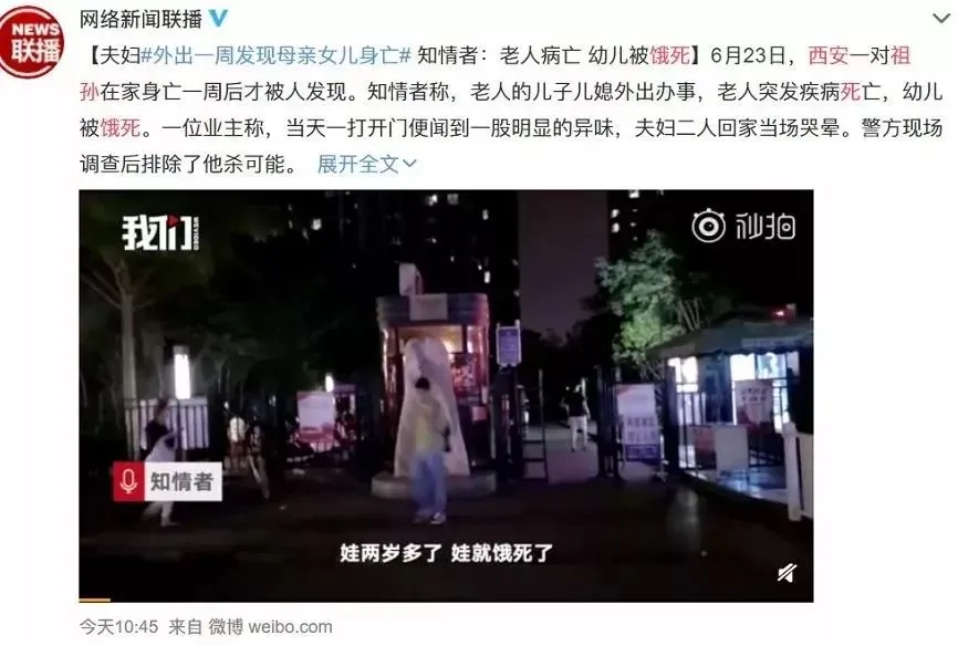 孩子的爸妈在这段时间外出旅游,在家照看孩子的老人突发疾病身亡,没几分钟,人就没了。