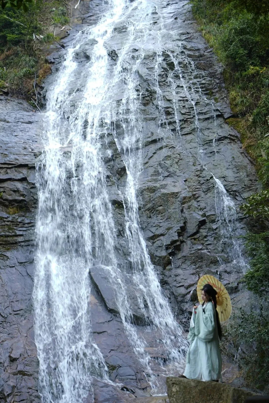 景区内拥有多达30余处飞瀑,其中最为著名的当属白水瀑布群。这一瀑布群由四级瀑布组成,每一级都有其独特的韵味和名字:第一级“登仙瀑”,高约23米,瀑流跌宕岩阶,如同一步登仙;第二级“珍珠瀑”,水花四溅,晶莹剔透,宛如颗颗珍珠散落人间;第三级“玉阶瀑”,瀑流沿岩体折叠而下,形成多个瀑布阶梯,飞银溅玉,美不胜收;最为震撼的当属第四级“仙女瀑”,高约86米,宽数丈,宛如婀娜多姿的白衣仙女舒袖伫立,令人叹为观止。瀑布群首尾相衔,山林翠色映衬下,更显清新脱俗,是摄影爱好者的天堂。