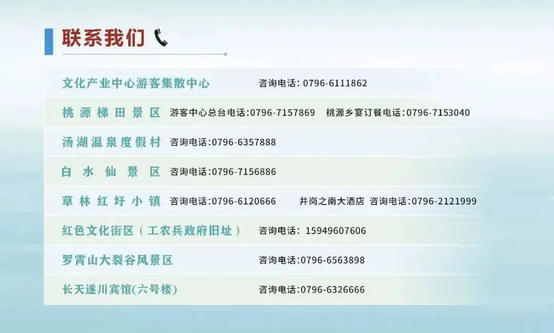 罗霄山大裂谷(推荐景区:平湖画舫、滨水栈道、大裂谷奇观)——草林红圩小镇(推荐景区:浮桥、老街、红色诗词馆、毛泽东旧居)——井岗之南酒店、草林老街——鄢溪古村(推荐景区:燕山书院、黄氏正祖祠)