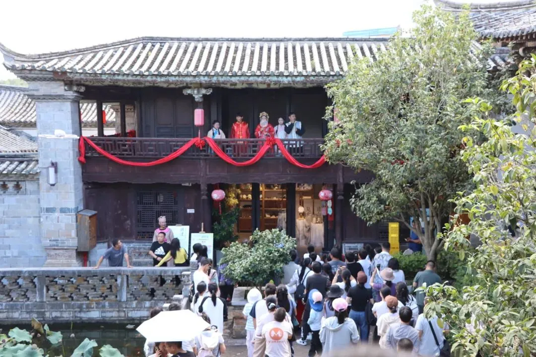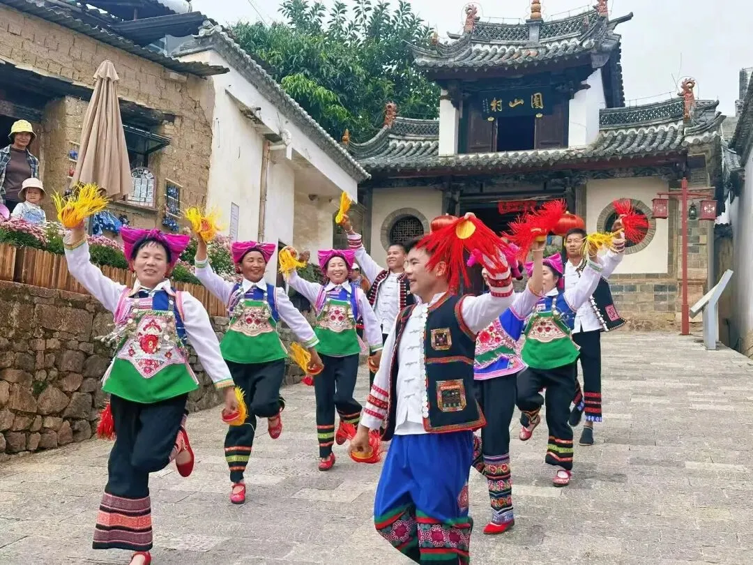 在景区开展非遗彝族烟盒舞、大头娃娃、车灯等建水本土民俗文化表演,让游客参与互动,一起欢歌载舞,感受浓浓的民族风情和民俗文化。