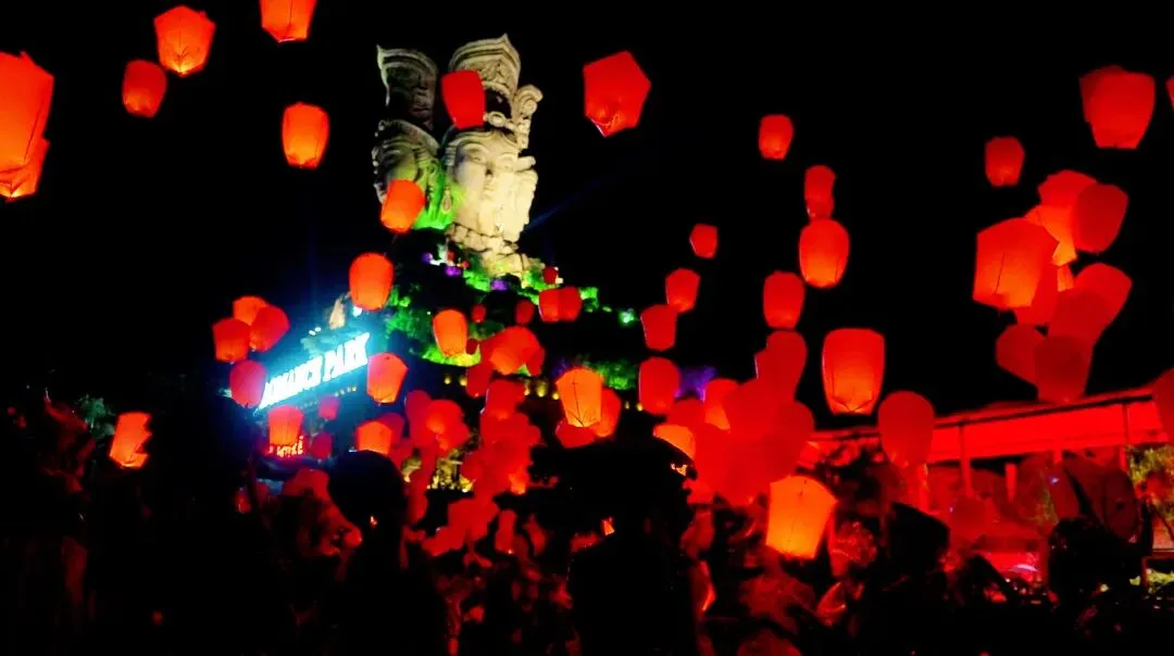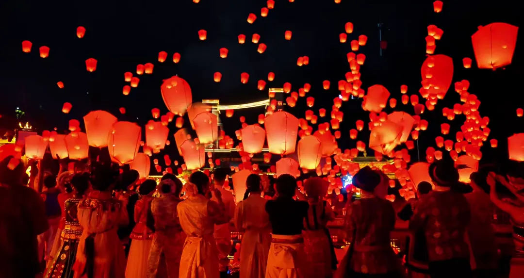 万盏孔明灯,缓缓升空如星河倒流,暖光点点