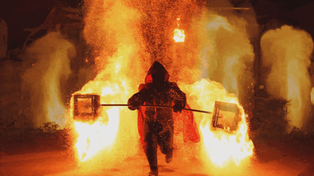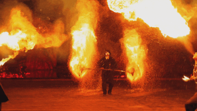 喷火绝技,气吞山河火刀破空,斩尽诸邪火立方旋转,光影迷离火壶倾洒,星火如雨