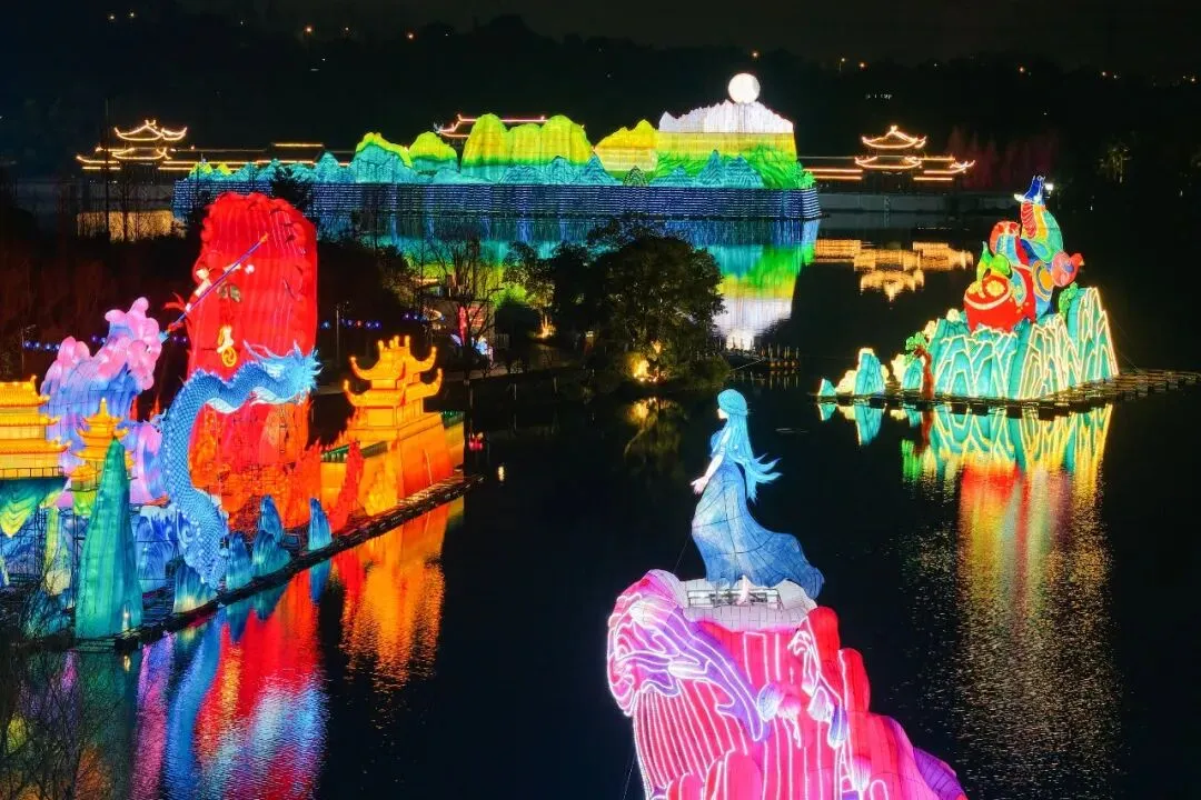 “园博园灯会则依托得天独厚的湖光山色,打破了传统灯会的布局模式,打造出‘灯在水中漂,人在画中游’的沉浸式体验。”张大伟说,园博园灯会和其他景区形成了良好的业态互补,凭借鲜明的市场竞争力迅速站稳脚跟,这种创新模式也有效拉动了文旅消费,成为其跻身热门景区的关键。