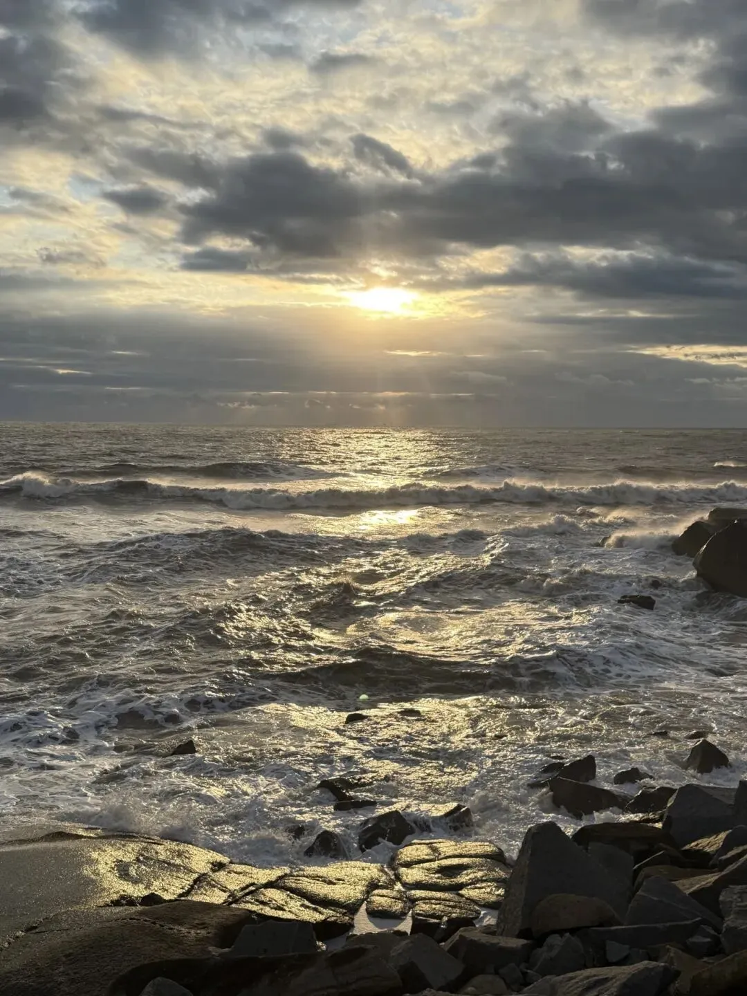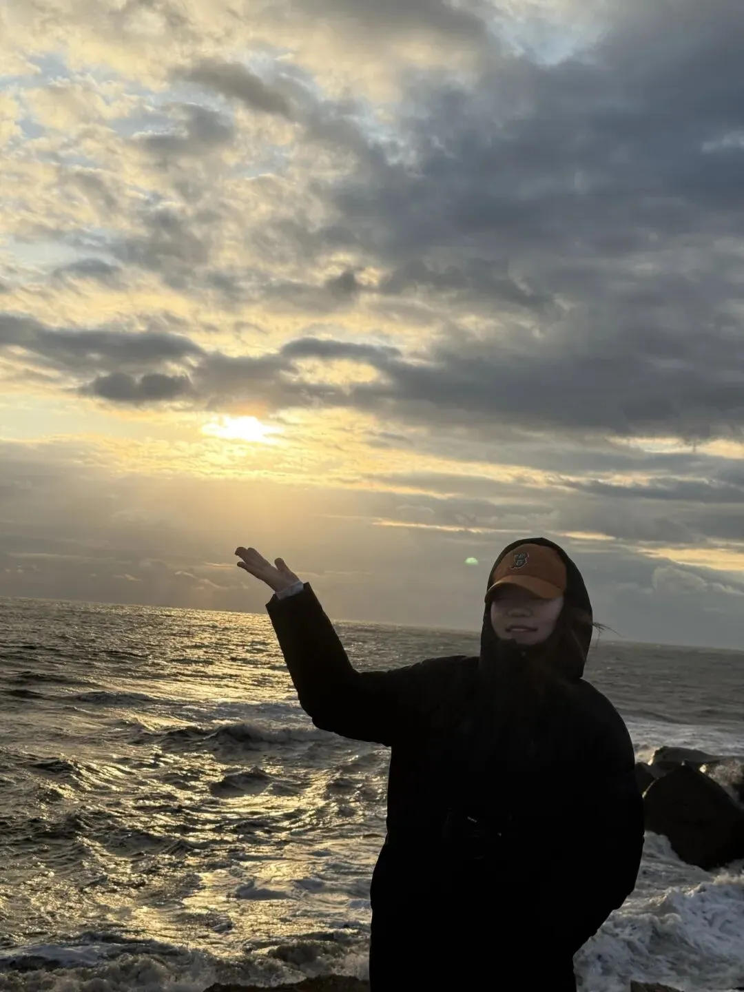 在海边呆了一个多小时,从起初天气多☁️,到太阳完全升起,期间有不少人都走了,还好我们坚持等着,最终看到了光亮的样子,非常圆满。
